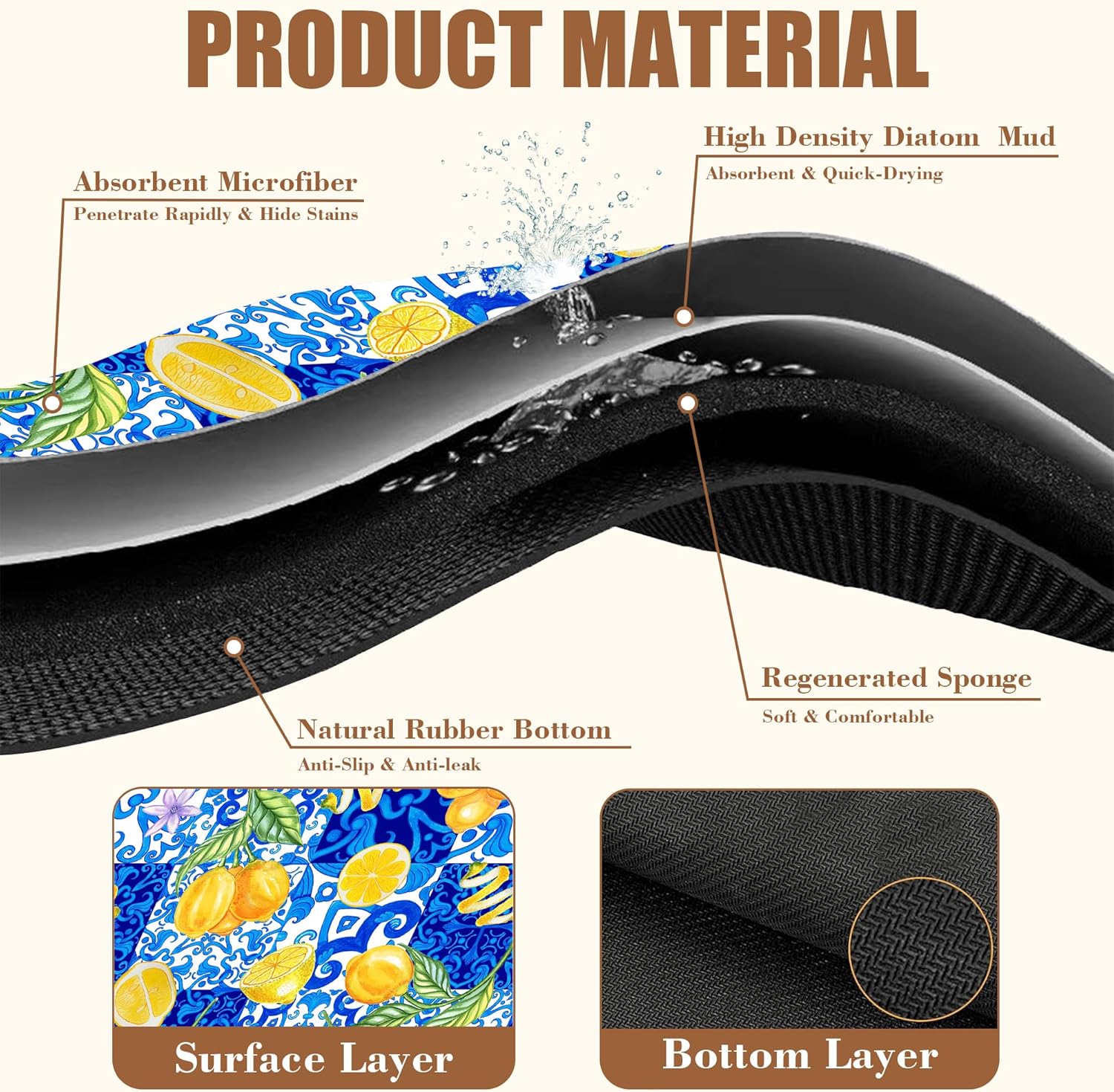 - 【Absorbent & Quick-Drying】The surface of this coffee mat is made of absorbent microfiber and the middle is made of composite sponge, which can absorb up to 4 times its weight in water and has a strong water absorption capacity. The high-density design makes it fast drying and can quickly absorb spilled liquids to keep your counter or desktop dry