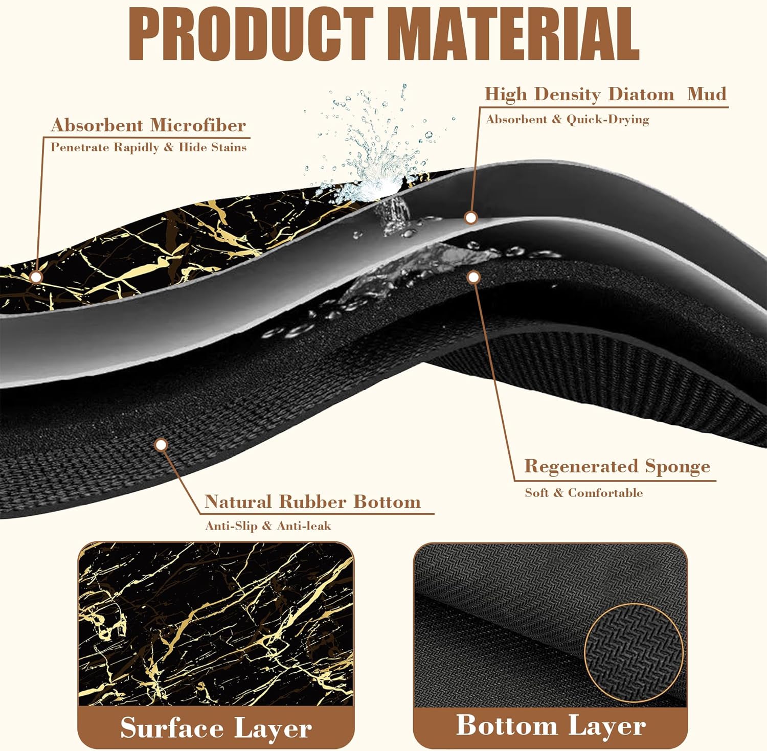 Dish Drying Mat Black and Gold Marble Coffee Bar Mat for Countertop Absorbent Rubber Backed Hide Stain Dish Drainer Rack Pad Coffee Maker Espresso Machine Dining Room Decoration 11.8 x 19.7 Inch