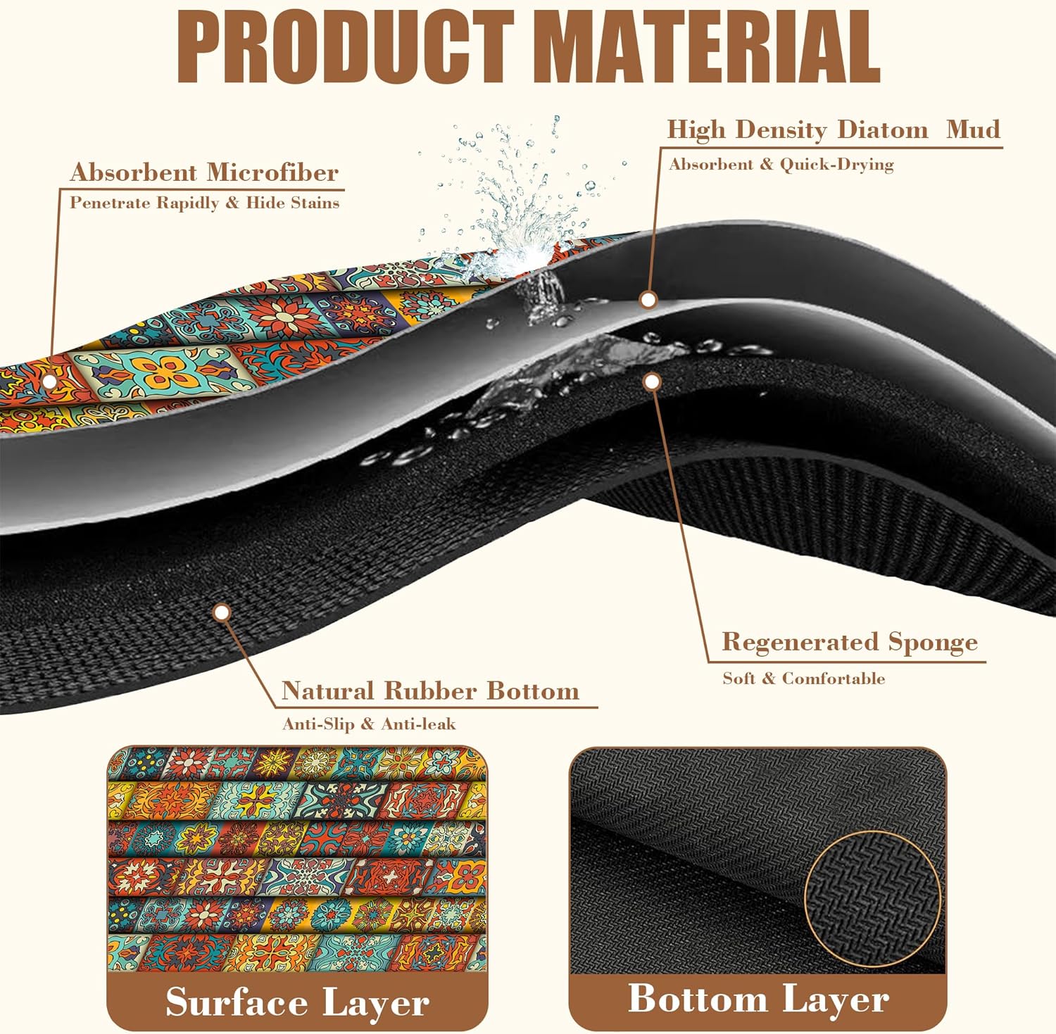 Boho Dish Drying Mat Colorful Mandala Flower Coffee Bar Mat for Countertop Absorbent Rubber Backed Hide Stain Dish Drainer Rack Pad Coffee Pot Espresso Machine Cafe Table Decoration 11.8 x 19.7 Inch