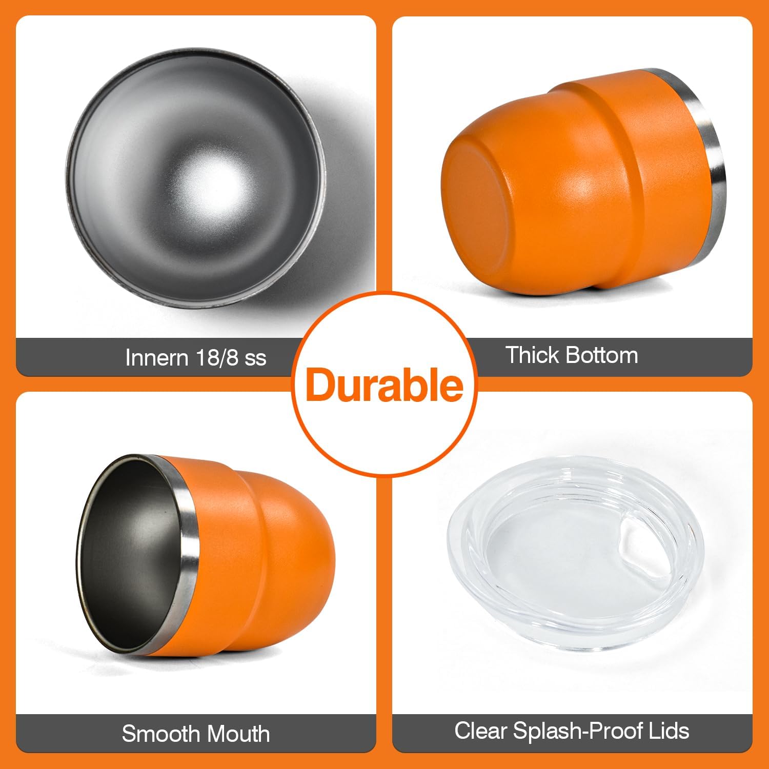 4oz Stackable Cup, Vacuum Insulated Espresso Cup Set of 2, Espresso Shot Glass for Coffee, Double Wall Stainless Steel Mini Tumbler Shot Glasses with Straw and Lid (A-orange2P, 4oz)