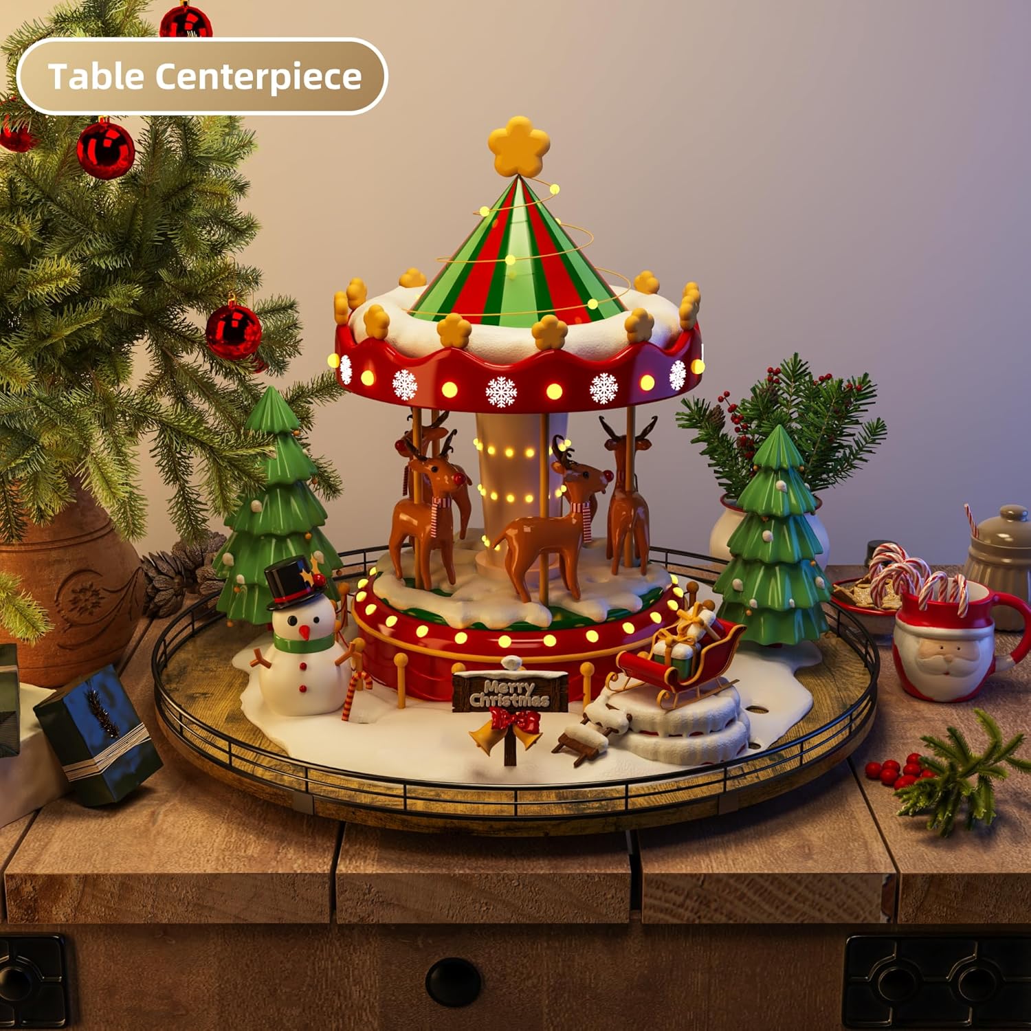 Lazy Susan Turntable Organizer for Table Top, 21’’ Round Wooden Lazy Susan for Cabinet Kitchen Countertop Pantry Dining Coffee Table for Condiments Spices, Rustic Bathroom Vanity Tray for Soap Candle