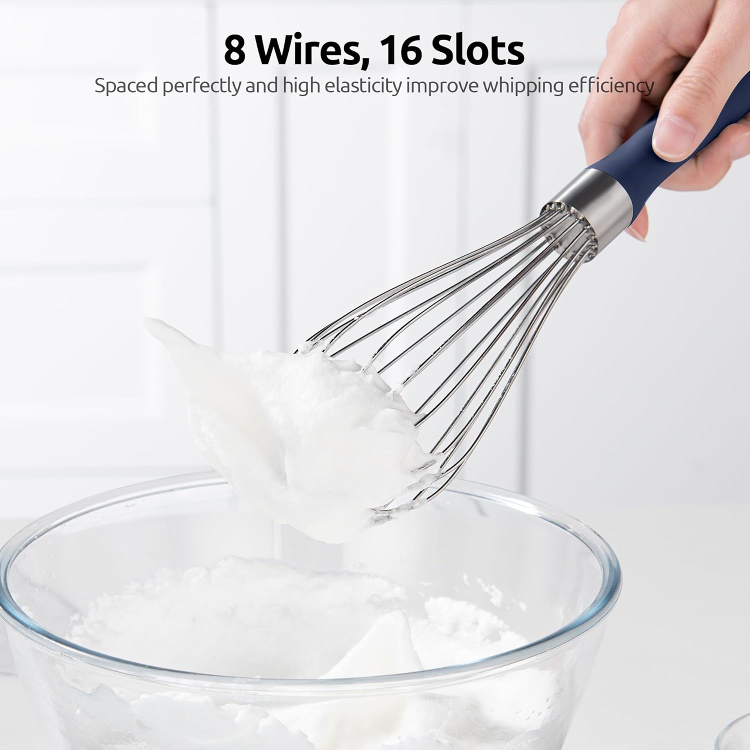 U-Taste Balloon Whisk for Cooking: 18/10 Stainless Steel Kitchen Wire Whisk, Medium Heavy Duty Egg Beater, Hand Baking Mixing Tool with 8 High Flex Wires for Stirring, Blending Sauce (Midnight Blue)