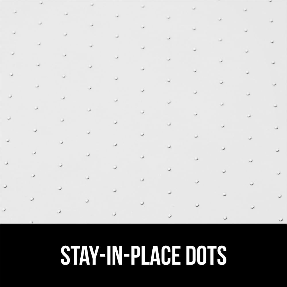 - STAYS IN PLACE: designed to lay flat and grip your cabinets, mat stays in place with daily use taking items in and out; raised silicone dots on the topside help prevent items from slipping and sliding around the mat