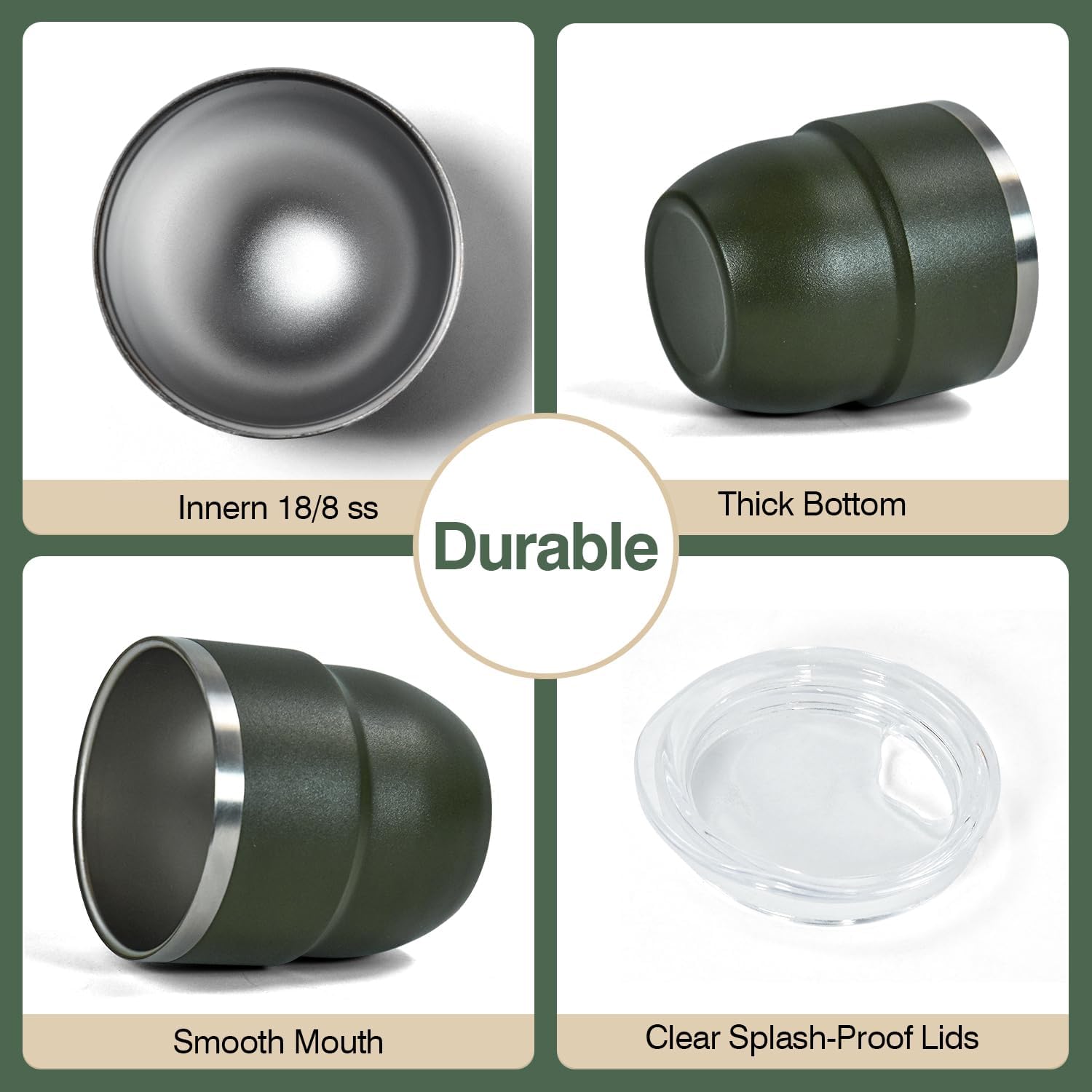 - DOUBLE WALL STAINLESS STEEL: Our espresso cups are made from double wall 18/8 stainless steel, vacuum insulated. Compared to ceramic lining, stainless steel lining are more durable, anti-scald, odourless, not break easily, and better at retaining hot or cold. Whether it's a hot coffee or an iced coke, this small cup is up to the task!