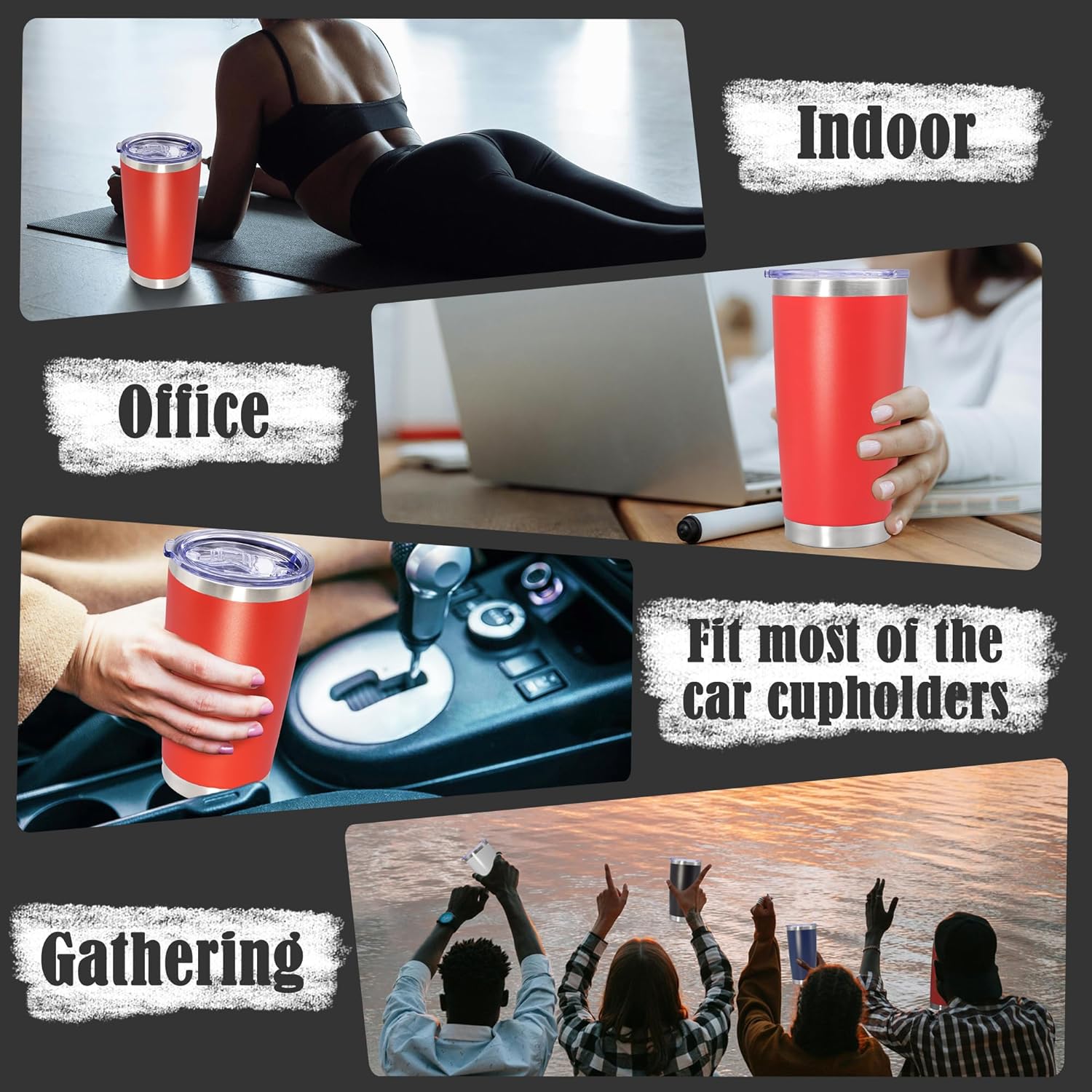 - POWDER COATED & EASY TO HOLD - The outside of the insulated travel tumblers is non-toxic frosted powder coating. There are 12 colors of powder coating, there is always a style you like. The frosted texture of the tumblers’ outer wall makes it easy for you to hold and the outer wall of the tumbler will never hang water droplets. In addition, Our insulated tumblers are also suitable for laser engraving, vinyl decals or color painting
