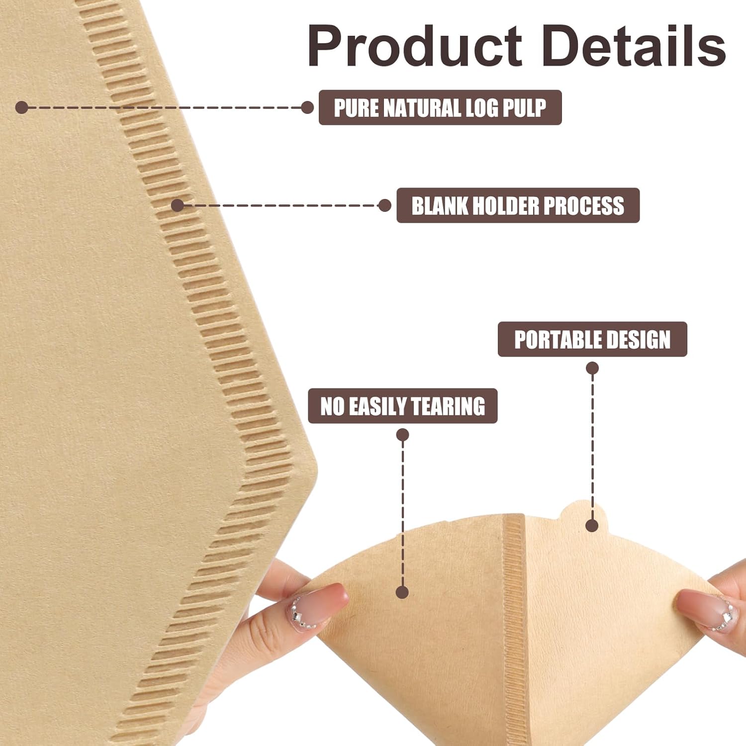 - Product Material: Coffee filters are made of natural wood pulp, which is clean and odor-free, unbleached, compostable