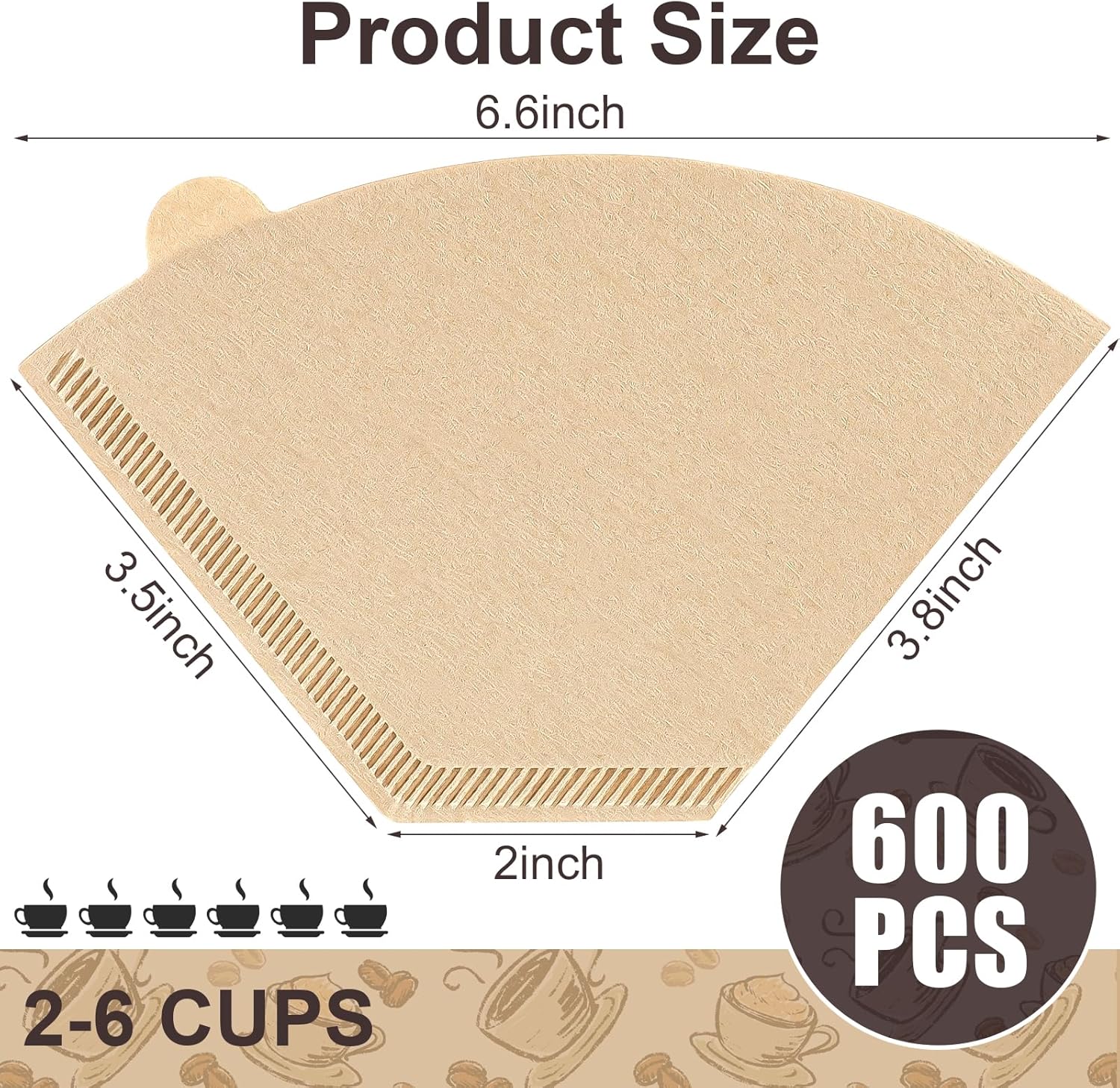 - Package Includes: 600 count 2 cone coffee filters(2-6Cups). Note: Filter paper size is shown in the picture, please make sure the size matches before purchasing