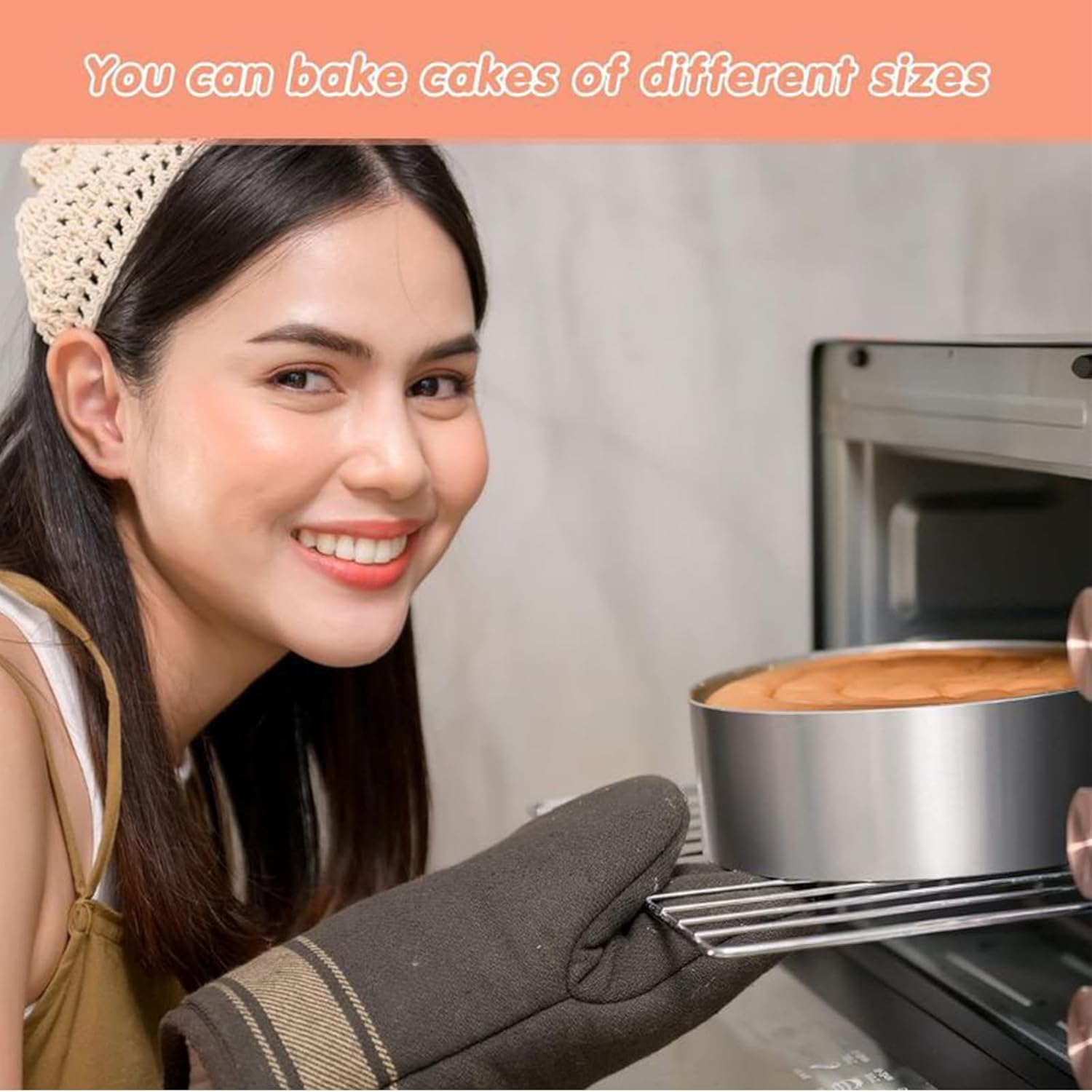- Innovative Adjustable Size: refine your baking utility with our adjustable cake rings; Each mold stands about 3.2inches/ 8.1 cm high but can be conveniently adjusted between about 6-12 inches in diameter, with scaling inside; This versatile size makes it flexible for creating pastries of different sizes
