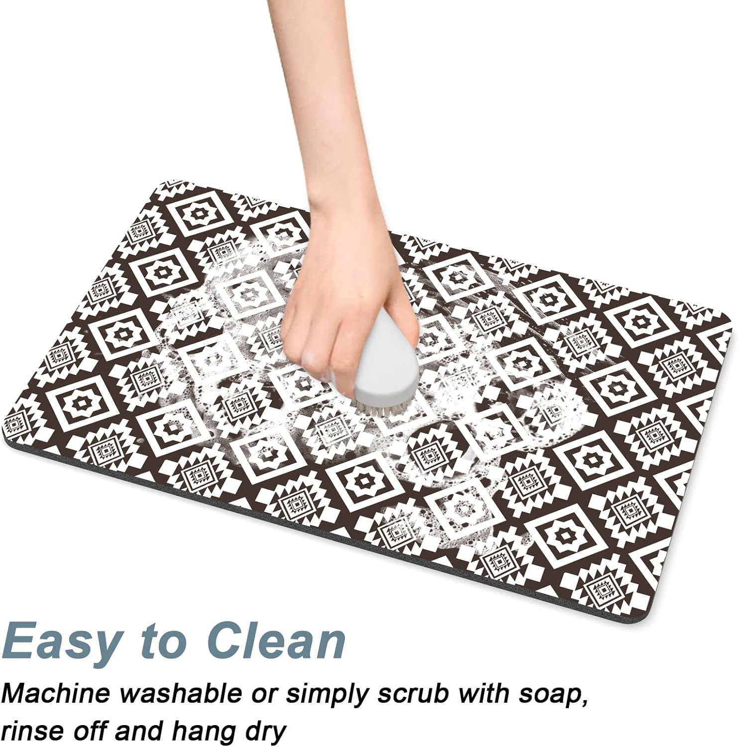 - Super Absorbent and Non-slip: Coffee bar decor mat is crafted from absorbent suede and anti-slip rubber. The surface is soft, heat-proofand and can quickly absorb liquid. The anti-slip rubber backing can firmly grip the floor without unwanted sliding