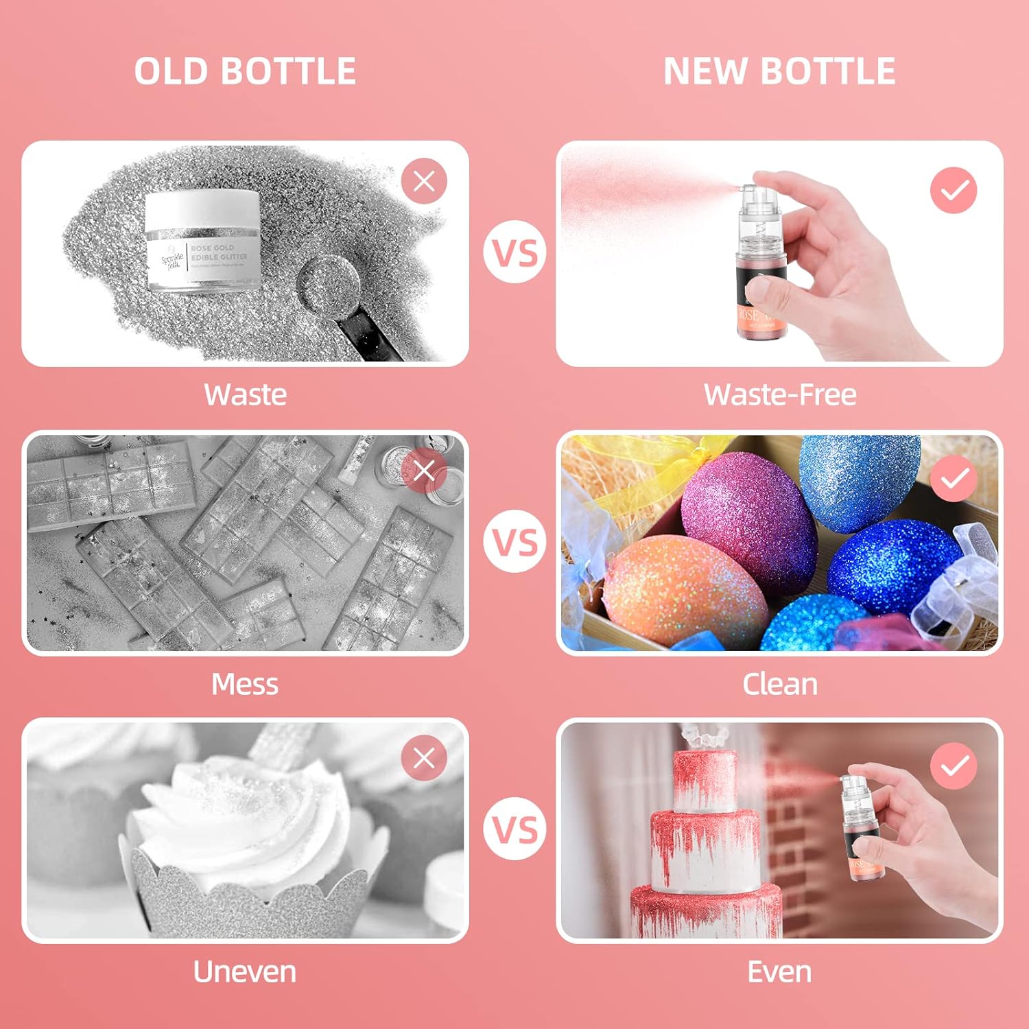 Edible Glitter Spray - 3/4oz Luster Dust Edible Food Grade Glitter Shimmer Dust Powder for Cocktails, Drinks, Cake Decorating - Metallic Food Coloring Powder for Wine, Candy, Cookie, Icing (Rose Gold)