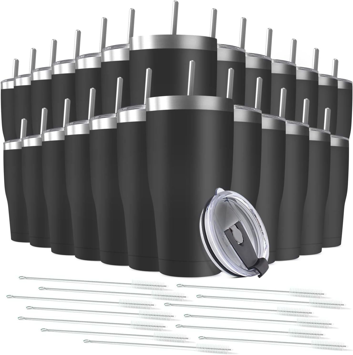 25 Pack 30oz Stainless Steel Tumblers Bulk Reusable Travel Mugs with Lid, Double Wall Powder Coated Coffe Cup for Home, Office, Outdoor Suitable for Vehicle Cup Holders Black
