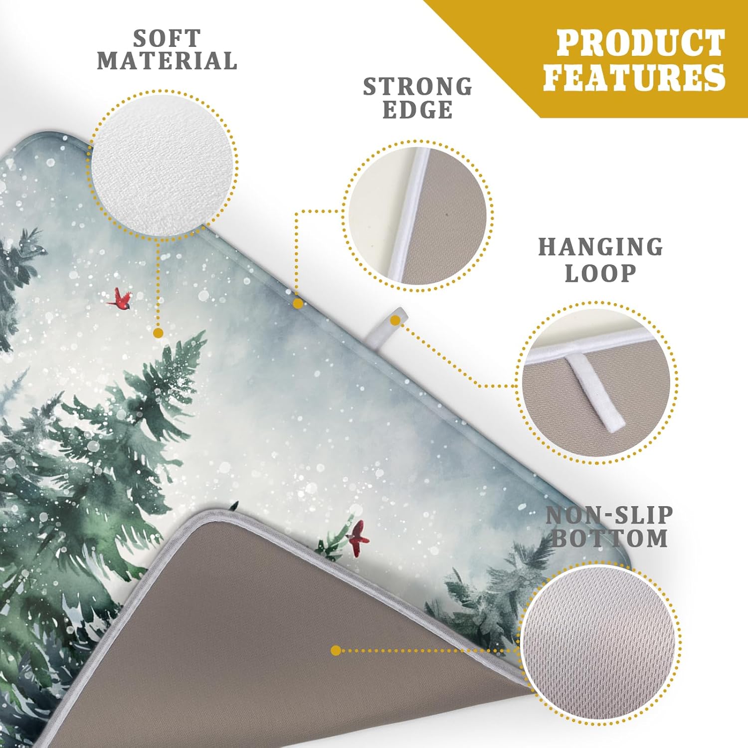 - 【Fashion Design】Our christmas drying mat for kitchen counter is customized with single-sided printing, one side is takes christmas as theme, printed with winter green pine trees, snowflakes and red cardinal bird pattern, does not fade, perfect functional addition to your kitchen decor, fitting well and tightly on most counters. Prepare the best holiday present for family and friend, housewarming parties, weddings, birthdays, Halloween, Christmas and Thanksgiving Day.