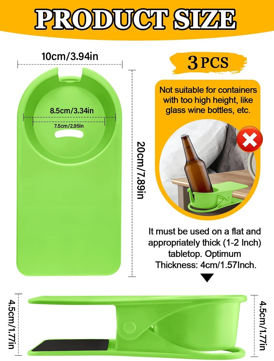 - ⚪ Keep Your Desktop Tidy: This cup holder clamp has an opening of 3.3 inches and can bear 1 kg. It can be clamped on tables with 1"~2.5" thickness, and is more suitable for thicker surfaces above 4cm/1.57". It is ideal for placing drinks, mobile phones, plants, etc. In addition, it can also be used in classrooms, game rooms, hospitals, and on buses and trains. It is your right-hand helper to keep your desktop tidy!