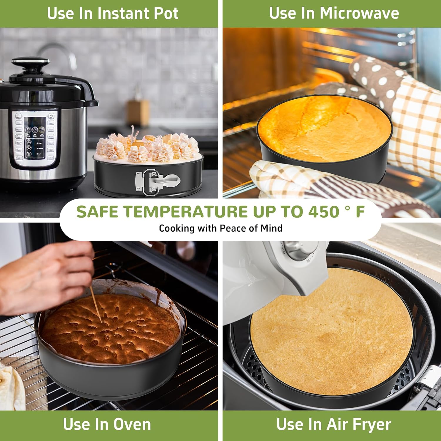 - Professional Cake Pan Set for Baking: Includes 3 pieces of non-stick cake pans (4-inch, 7-inch, 9-inch). High-quality materials enable the spring form pan for cheesecake to heat up quickly and evenly in the microwave or oven, heat-resistant up to 450°F
