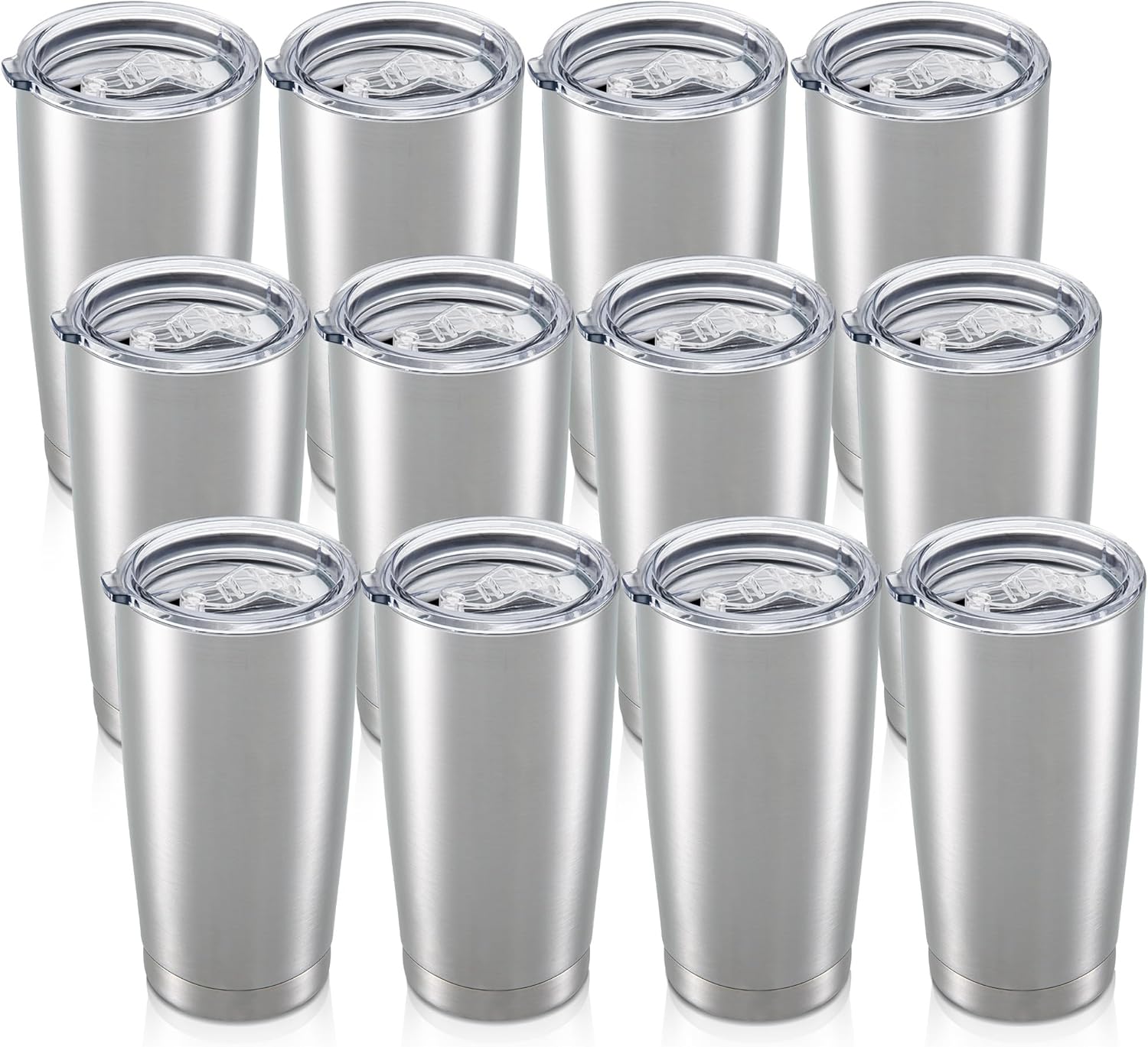 20 oz Tumbler with Lid Stainless Steel Insulated Tumblers Bulk Double Wall Vacuum Cups Powder Coated Travel Mug Keep Drinks Cold and Hot, Stainless Steel, 12 Pack