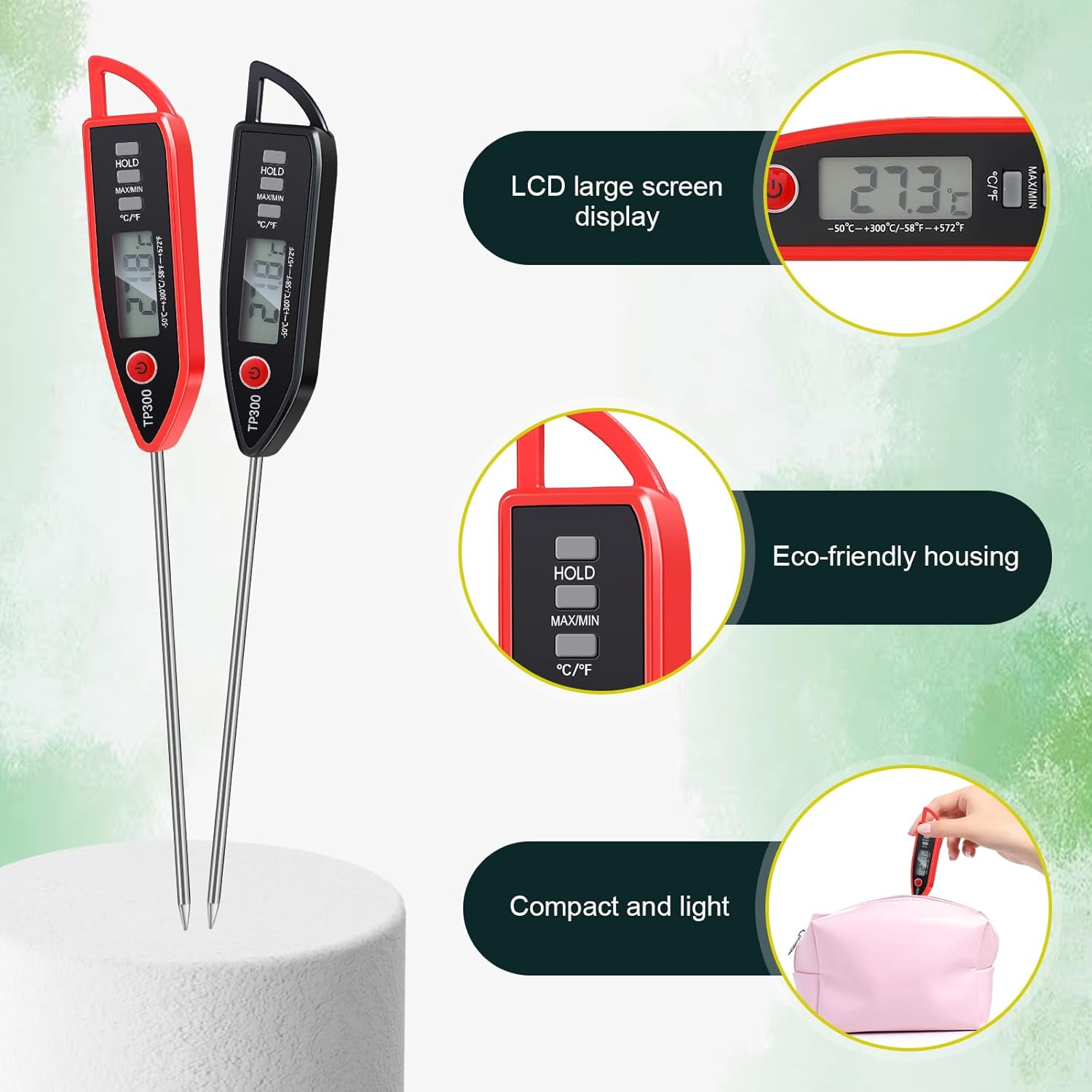 6 Set Waterproof Food Thermometer for Water, Liquid, Candle and Cooking Digital Meat Thermometer with Long Probe Instant Read for Kitchen BBQ Grill Candy (Black,Red)