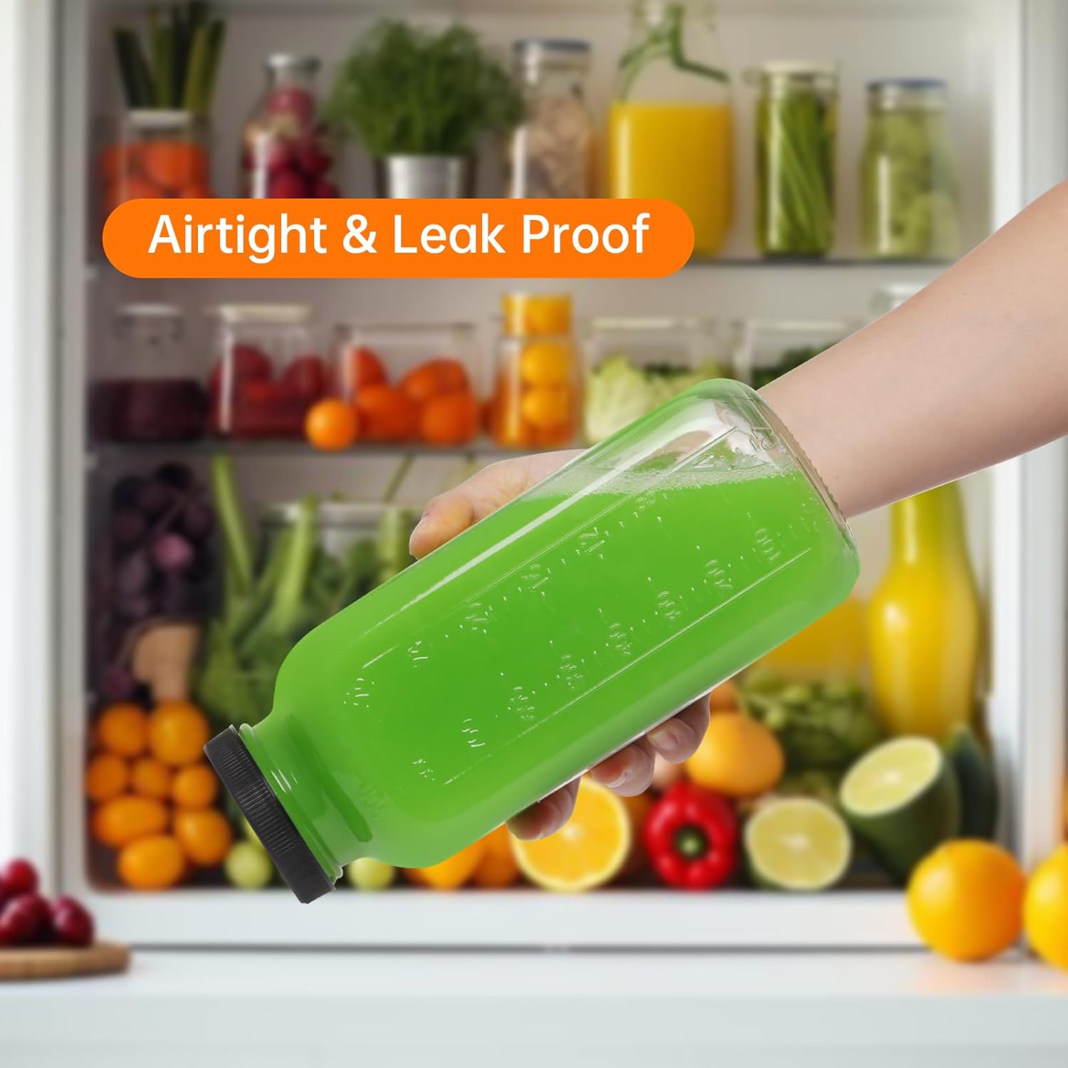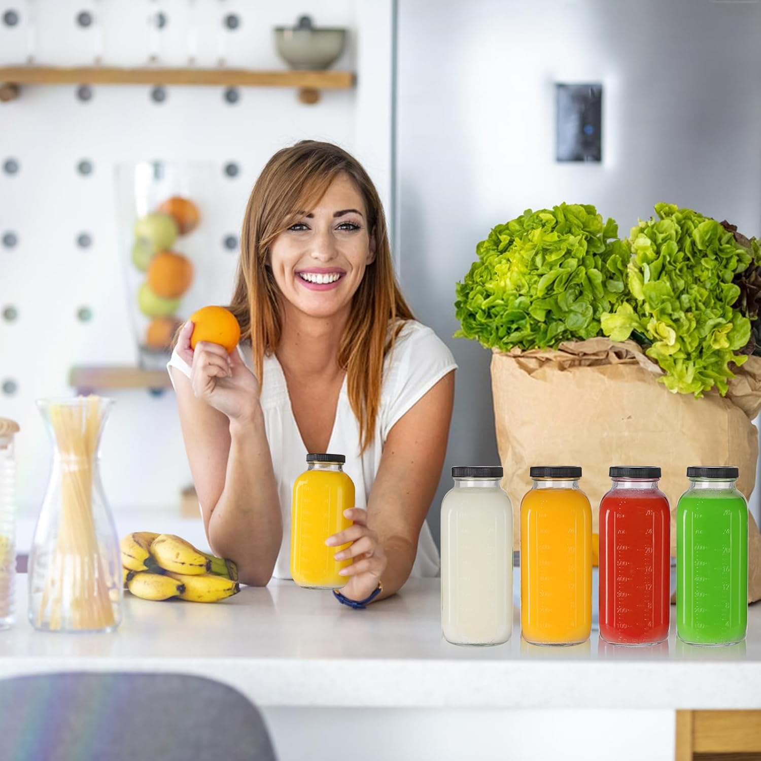 STARSIDE 32 oz Glass Juice Bottles with Lids 4 Pack - Square Reusable Drinking Jars for Juicing, Milk, Kombucha - Includes 1 Bottle Brush, 6 Colored Labels