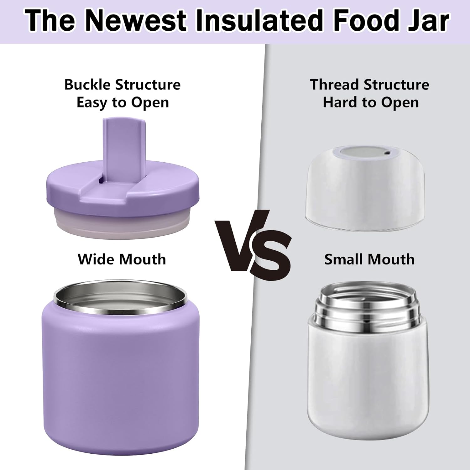 26oz Kids Thermos for Hot Food, Insulated Vacuum Food Jar with Buckle Lid, Stainless Steel Wide Mouth Leak Proof Insulated Lunch Container for School Picnic Travel, Purple