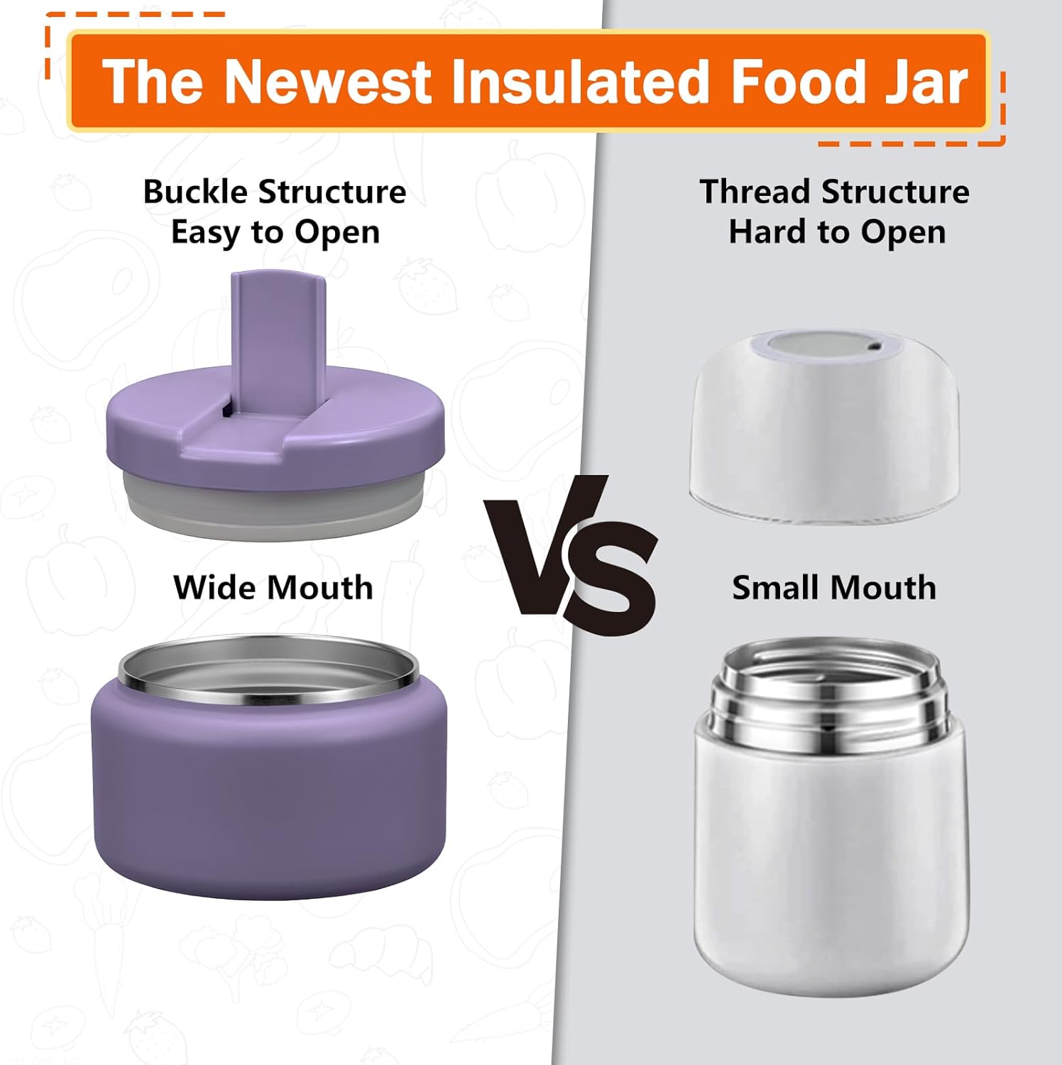 - Easy to Open: This thermos for hot food features a unique Buckle Structure design. Simply pull the handle to a 90° angle to easily open the lid. The handle is especially child-friendly, allowing little hands to open it with ease.