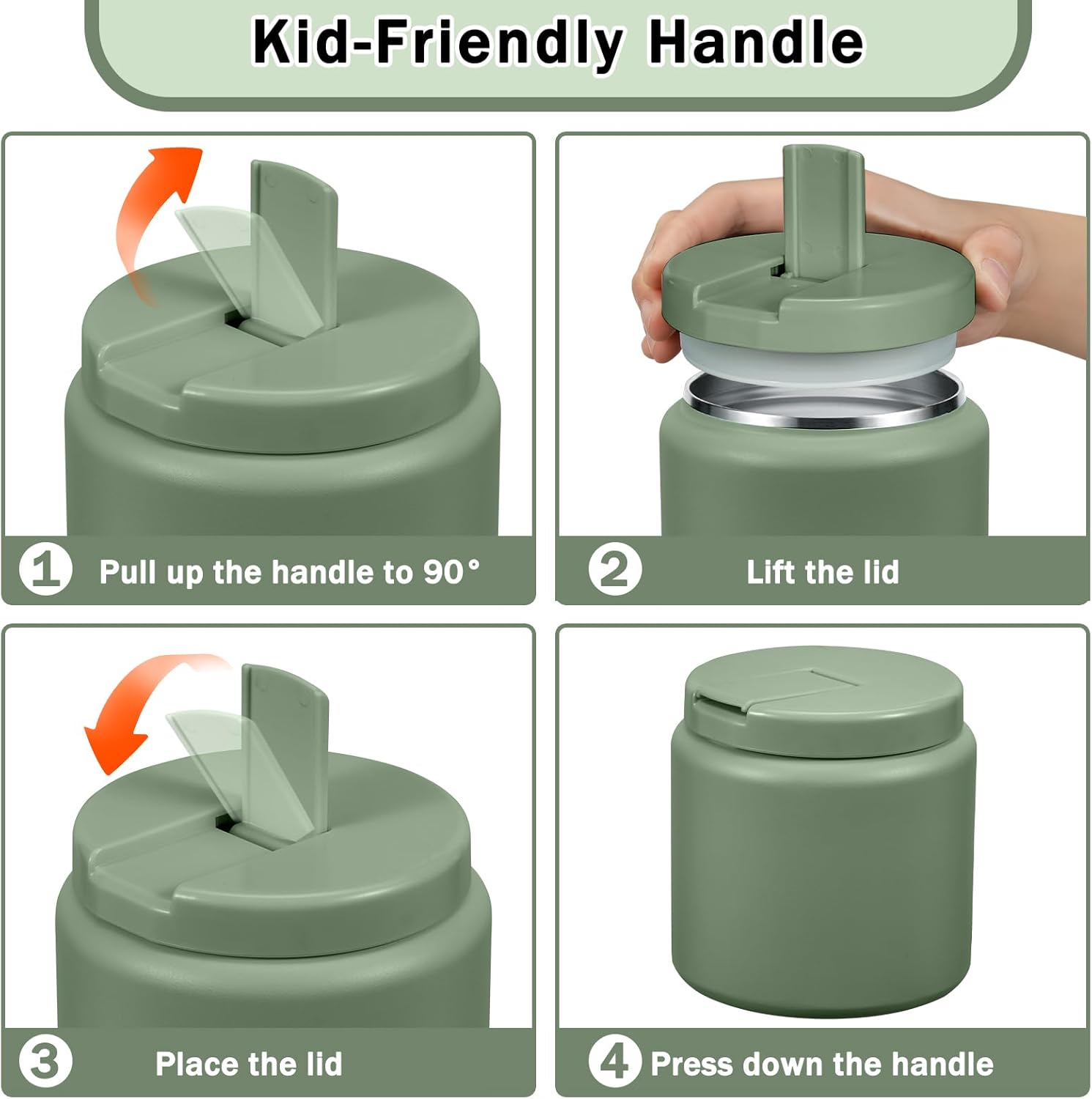 - Easy to Open: This jar for hot food features a unique Buckle Structure design. Simply pull the handle to a 90° angle to easily open the lid. The handle is especially child-friendly, allowing little hands to open it with ease.