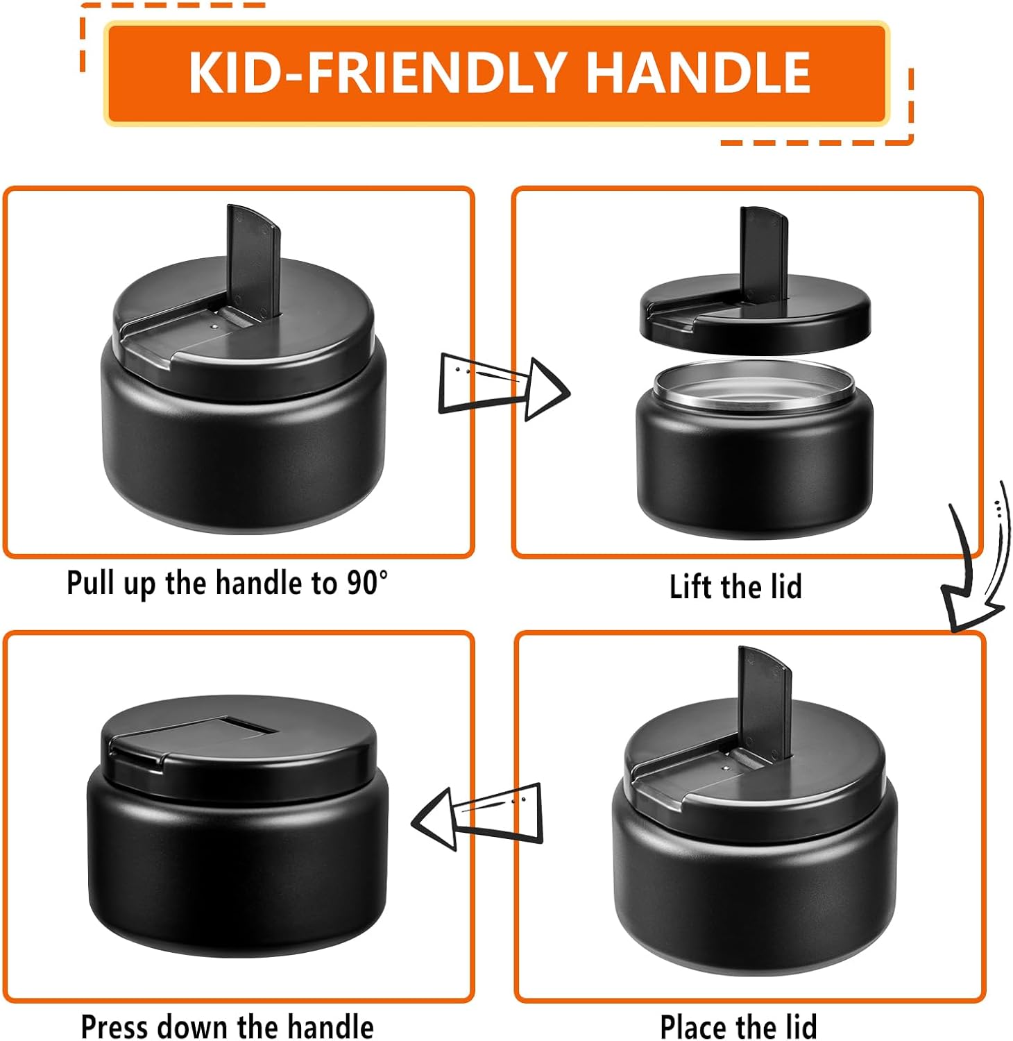 - Easy to Open: This jar for hot food features a unique Buckle Structure design. Simply pull the handle to a 90° angle to easily open the lid. The handle is especially child-friendly, allowing little hands to open it with ease.