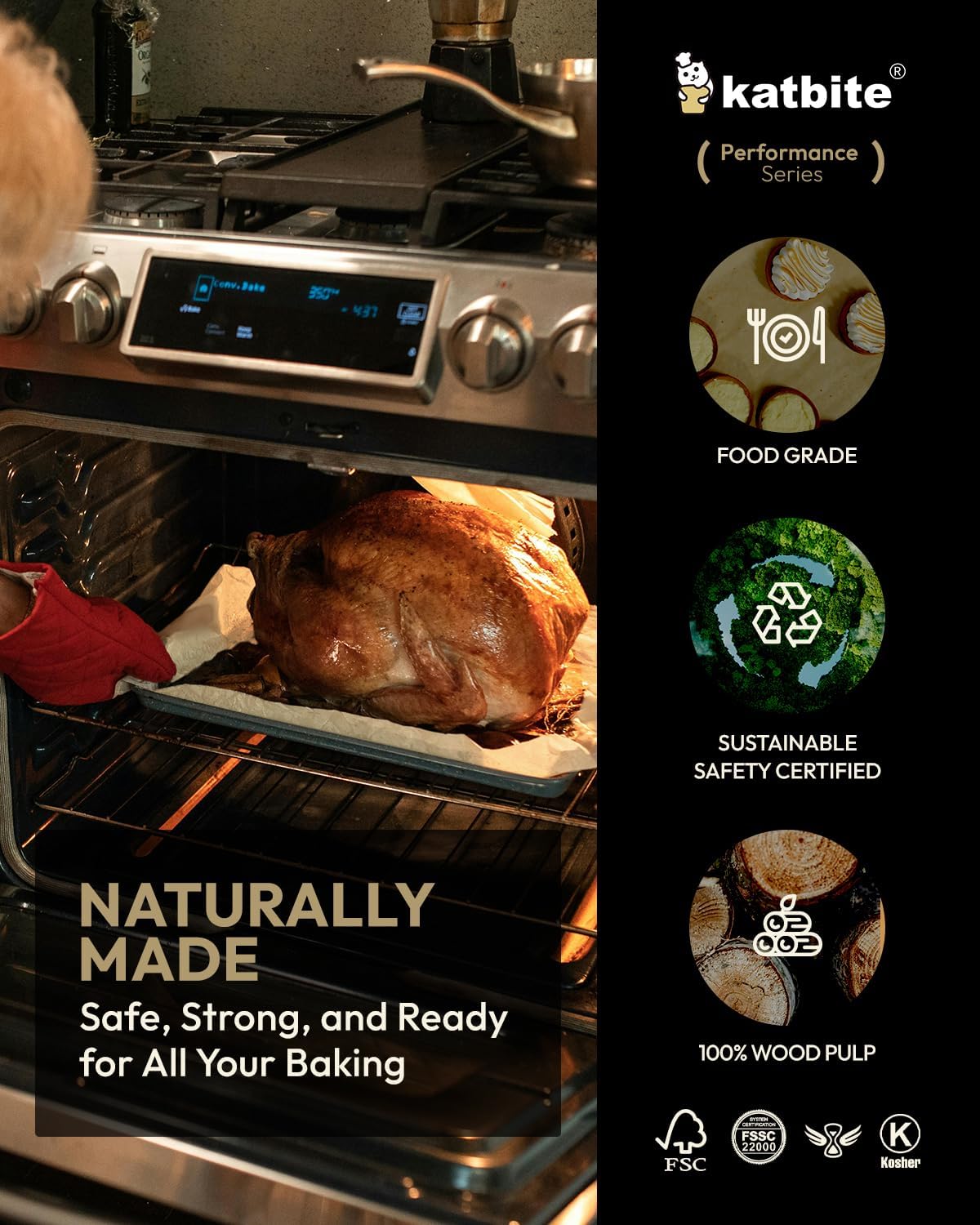 - Non-Stick & Easy to Clean: Elevate cooking with Katbite’s Performance Series parchment paper sheets. Crafted for baking lovers and professional chefs alike. Particularly excellent for frying, roasting, and grilling. Parchment paper handles oily and high-fat foods with ease, simplifying cleanup and keeping your pans spotless. Whether you're preparing crispy chicken, roasted vegetables, or grilled delicacies, our parchment paper sheets makes it hassle-free. Katbite is always your kitchen helper!