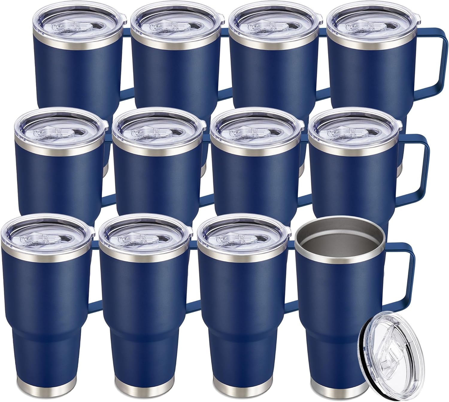 30 oz Tumbler with Handle and Lid, Stainless Steel Tumblers Bulk Double Wall Vacuum Insulated Travel Mug Leak Proof Cup Keep Drinks Cold and Hot Navy, 12 Pack
