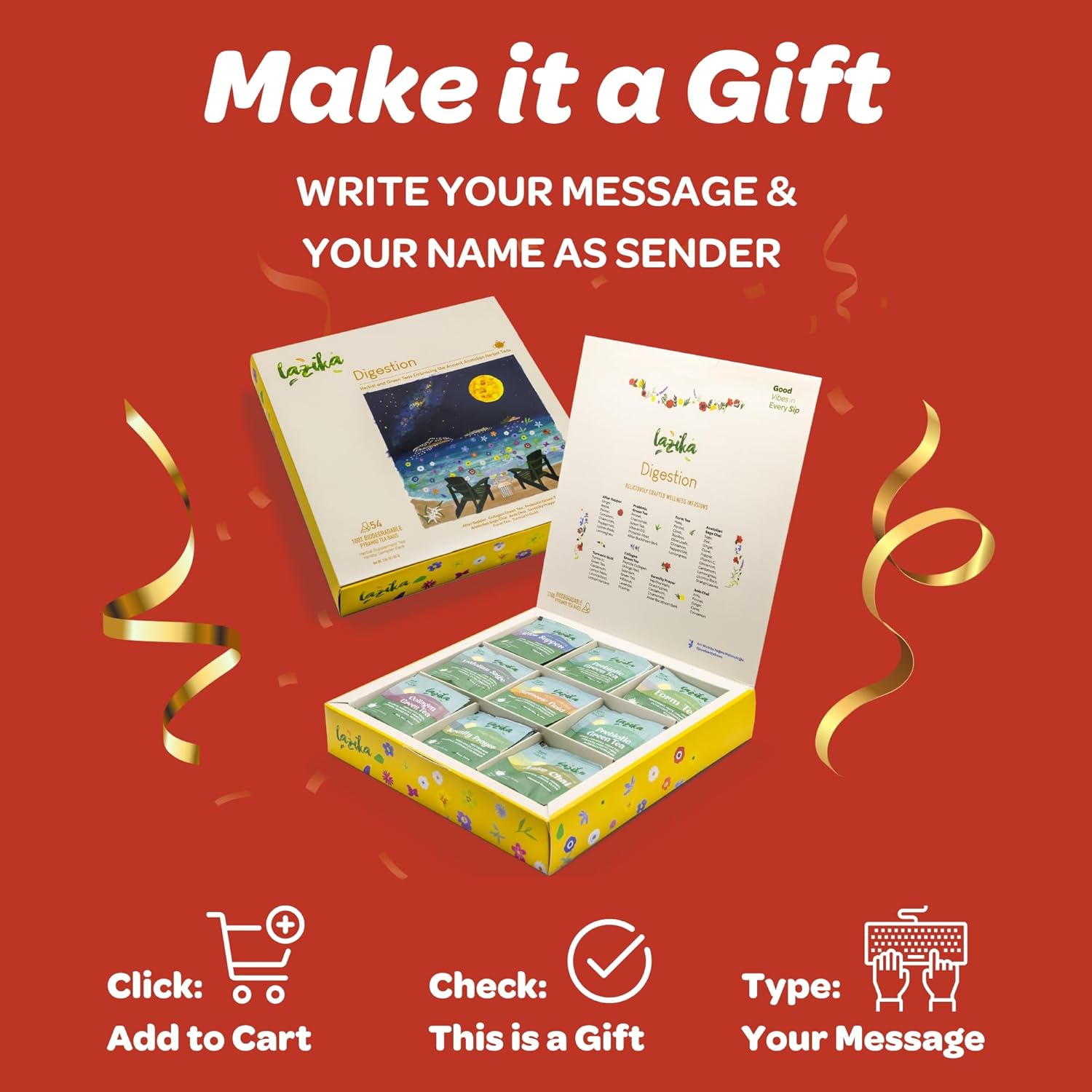 Lazika Herbal Tea Variety Pack with Lovely Presentation Box, 54 Counts Digestion Tea Assortment Gift Set, Premium Collection with Pyramid Infuser Bag, Handcrafted