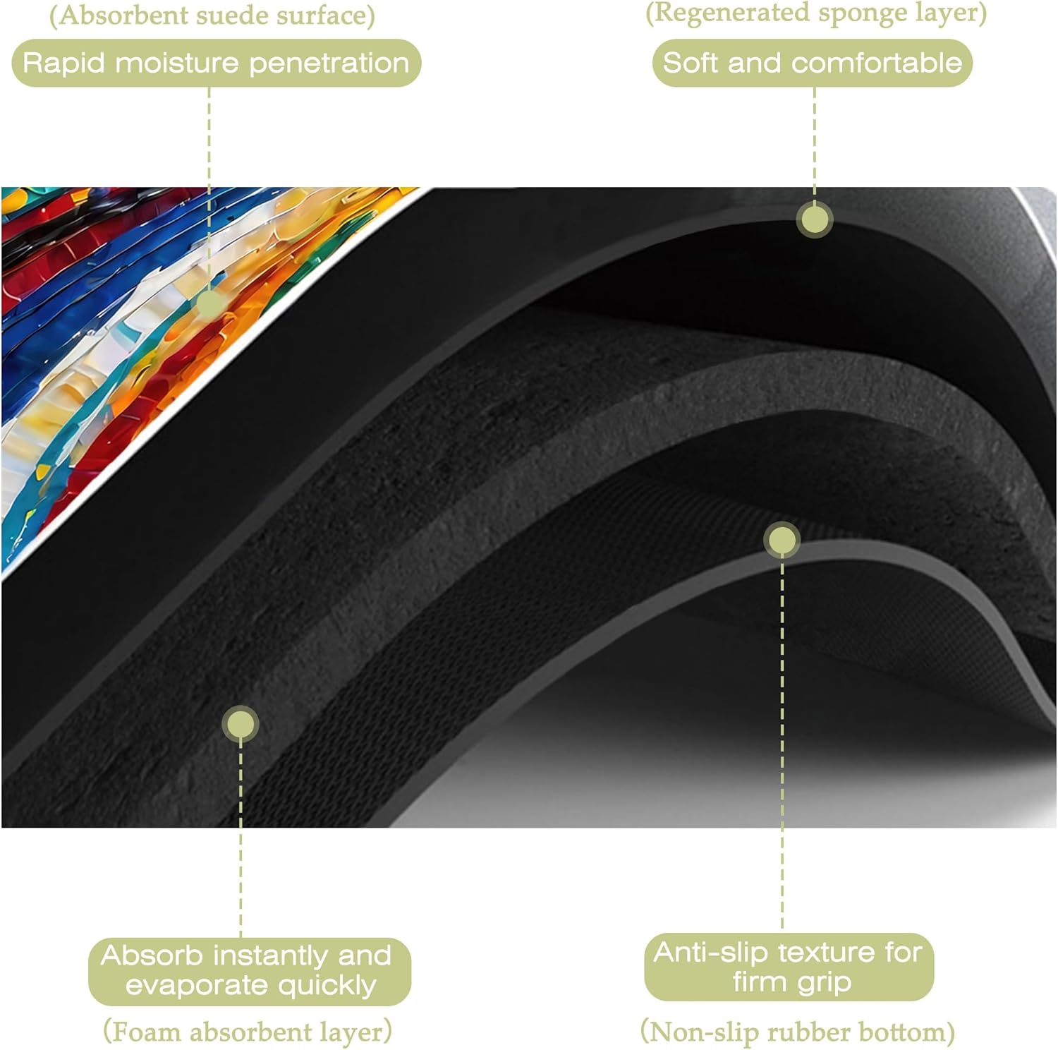 - Super absorbent and non-slip:This kitchen mat absorbent layer is made of absorbent suede and diatom mud,the surface porosity of the product is as high as 85%,which can quickly absorb water and stains,the texture design on the back is more non-slip