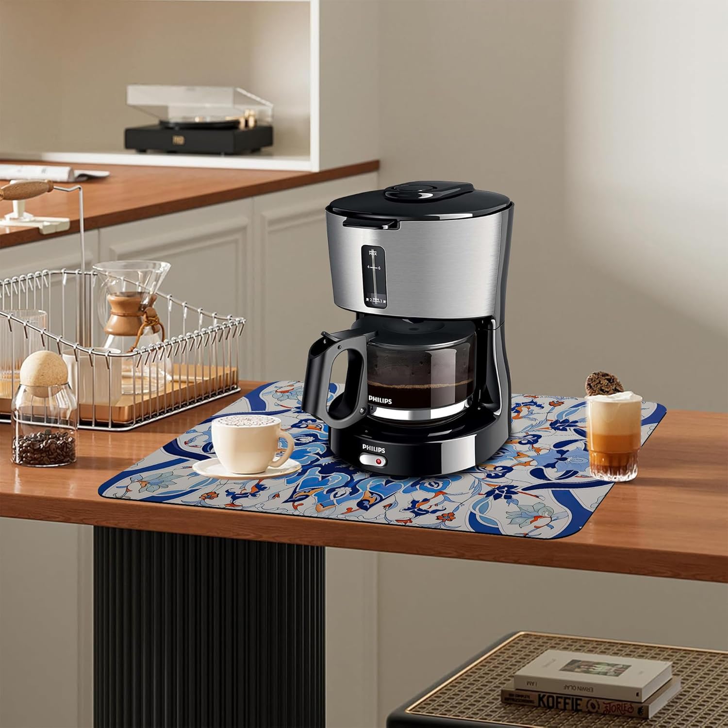 Dish Drying Mat Mandala Blue Floral Kitchen Mat 16"x24" Bsorbent Coffee Maker Mat for Dishes,Utensils Coffee Maker Pots and Pans Easy Clean Dish Slip Resistant Pad