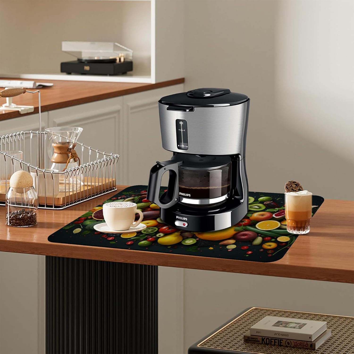Kitchen Mat Fruits Vegetables Dish Drying Mat 16"x24" Bsorbent Coffee Maker Mat for Sink Dishes or Under Rack Kitchen Counter Accessories Absorbent Hide Stain Rubber Backed Dish Drying Pad