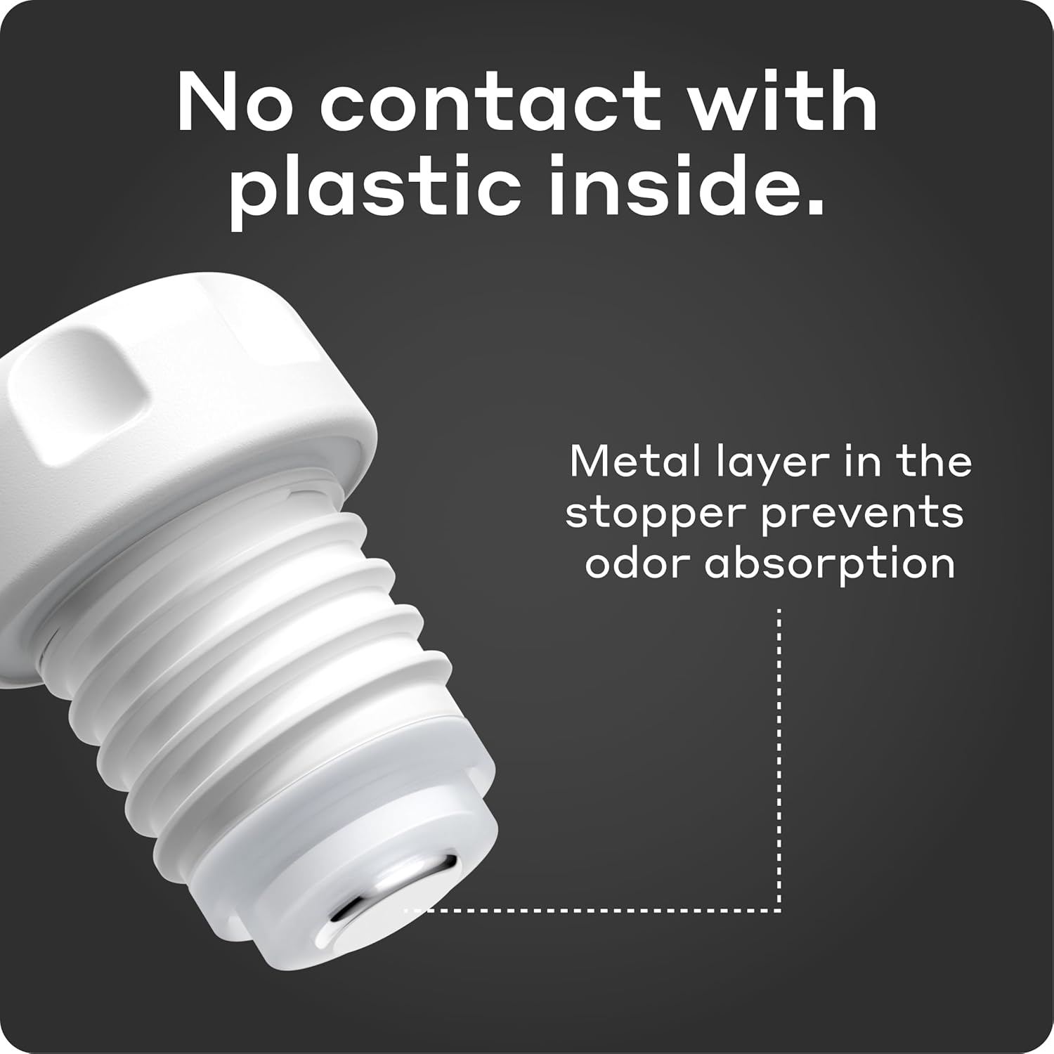 - SAFETY FIRST: 18/8 high grade rust-free stainless steel metal bottle. BPA-free, food-grade steel, food-grade plastic and silicone. Stopper has extra metal layer to prevent odor absorption. Your drink will never touch any plastic