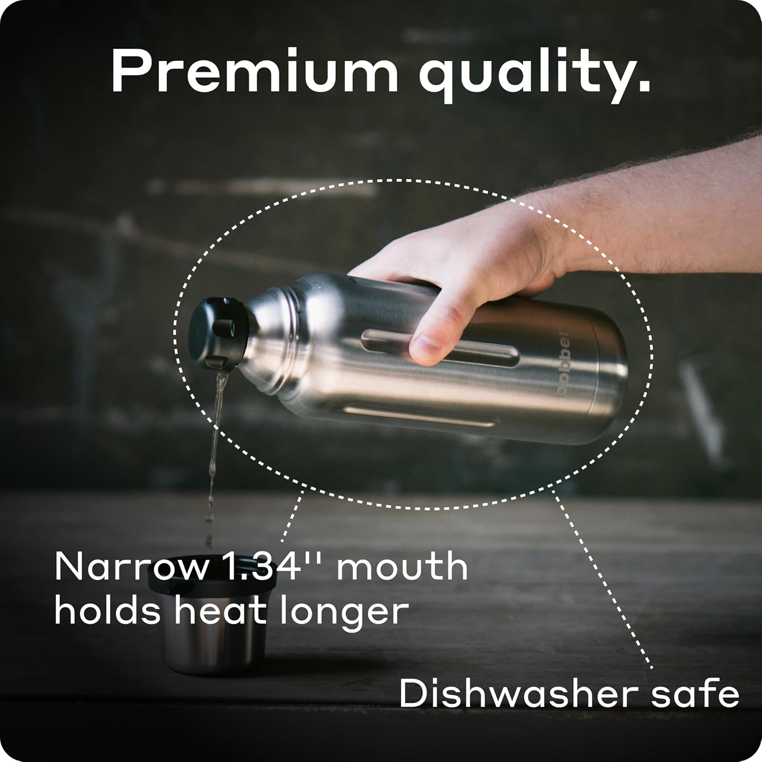 BOBBER 26 oz Stainless Steel Travel Thermos for Hot Drinks – Dishwasher Safe Metal Water Bottle with Cup Lid for Men, Hiking, Travel – Keeps Hot for 36 Hours – BPA-Free, Vacuum Insulated (Iced Water)