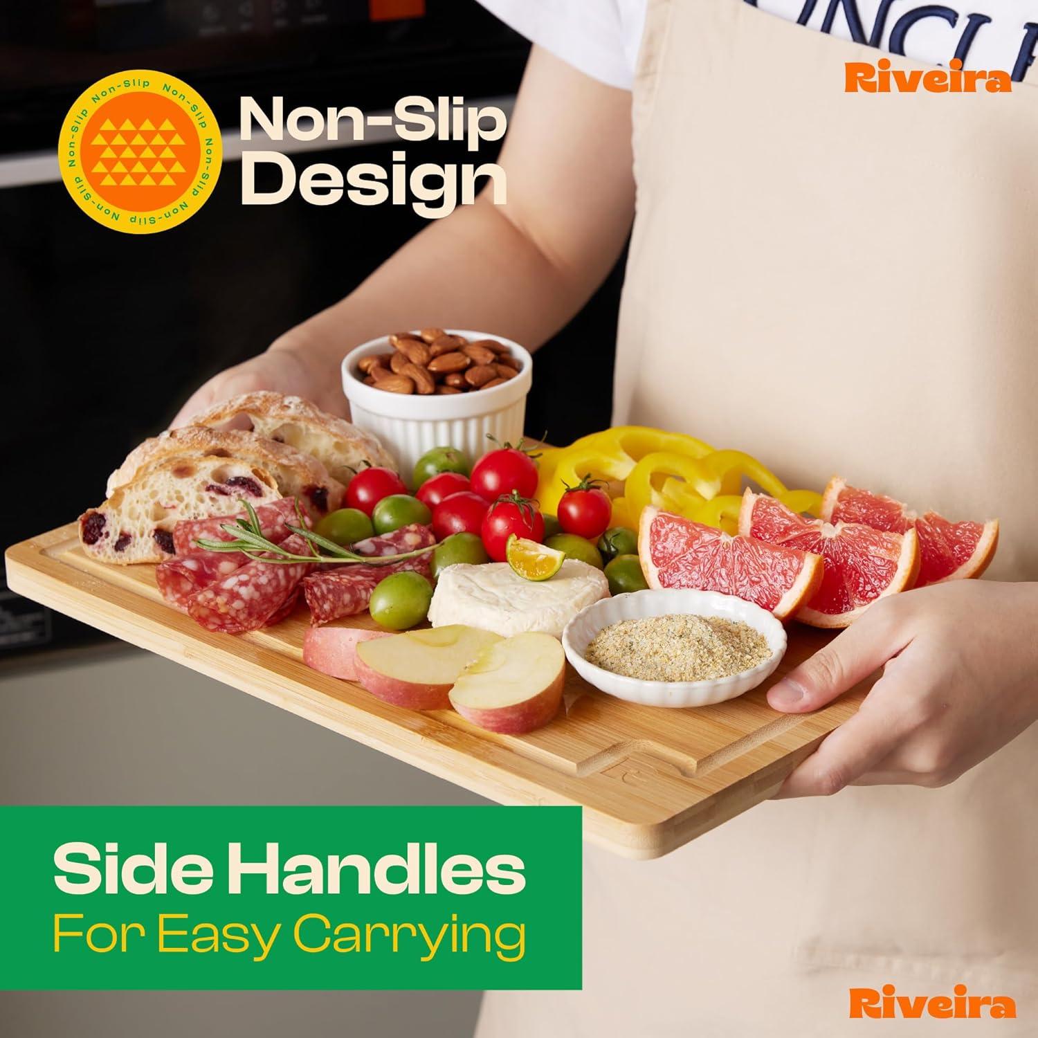 Riveira White Bamboo Wood Cutting Board – Versatile And Durable: Set Of 2 Pcs Rectangular Wooden Cutting Board – Natural Wooden Cutting Boards For Kitchen – Complete White Bamboo Wooden Chopping Board