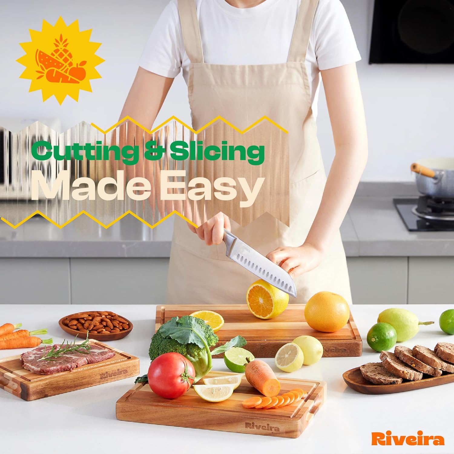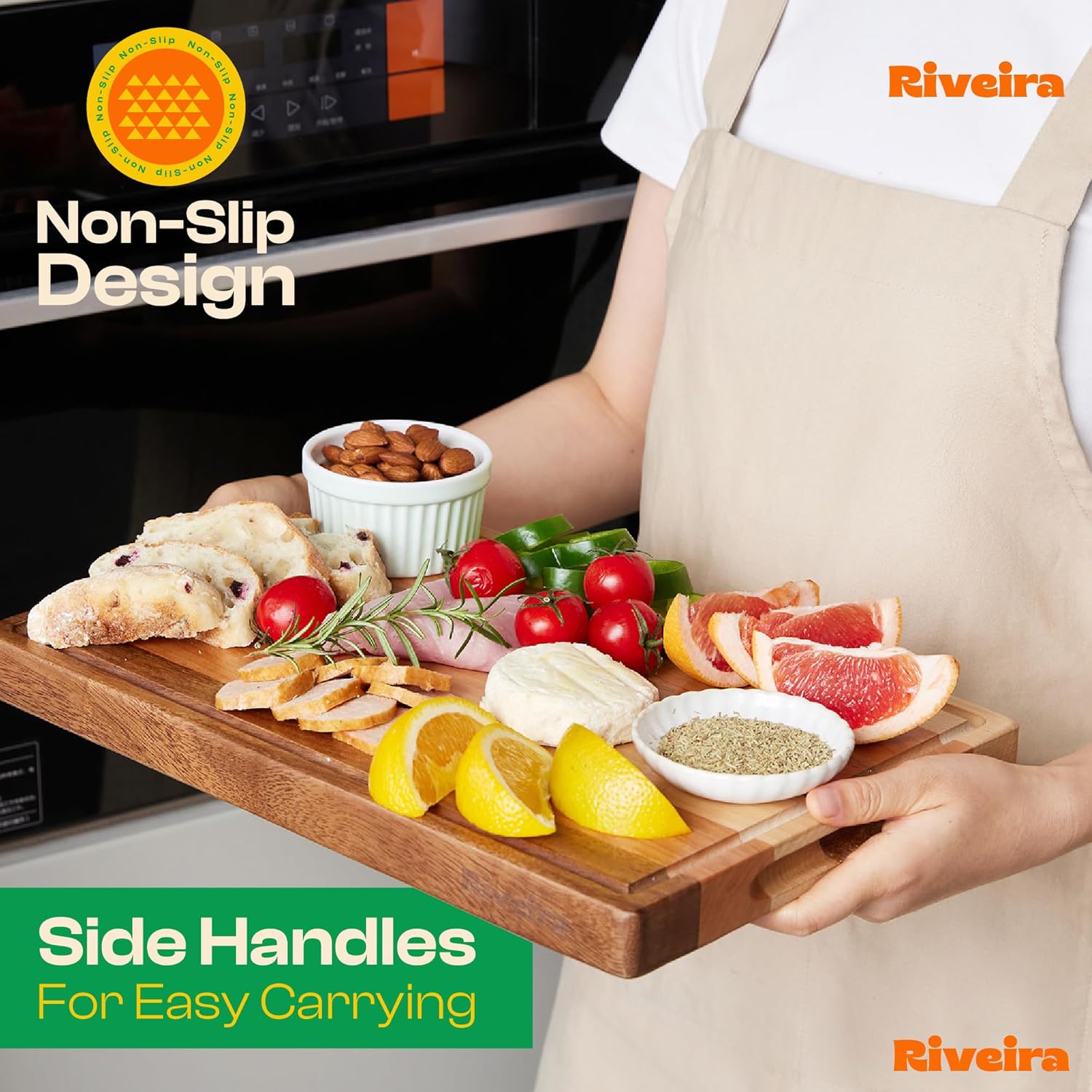 - Handle Everything with Confidence — The built-in handle holds of the Walnut/Cherry/Maple cutting boards are designed for handling everything with confidence and easy maneuvering. Pre-oiled and ready for immediate bewilderment, wooden chopping board is not just convenient for the kitchen mess but has a unique design to maintain, ensuring a performance that is both comfortable and clean for chopping boards for kitchen. Riviera non toxic cutting boards for kitchen will be perfect in your kitchen.