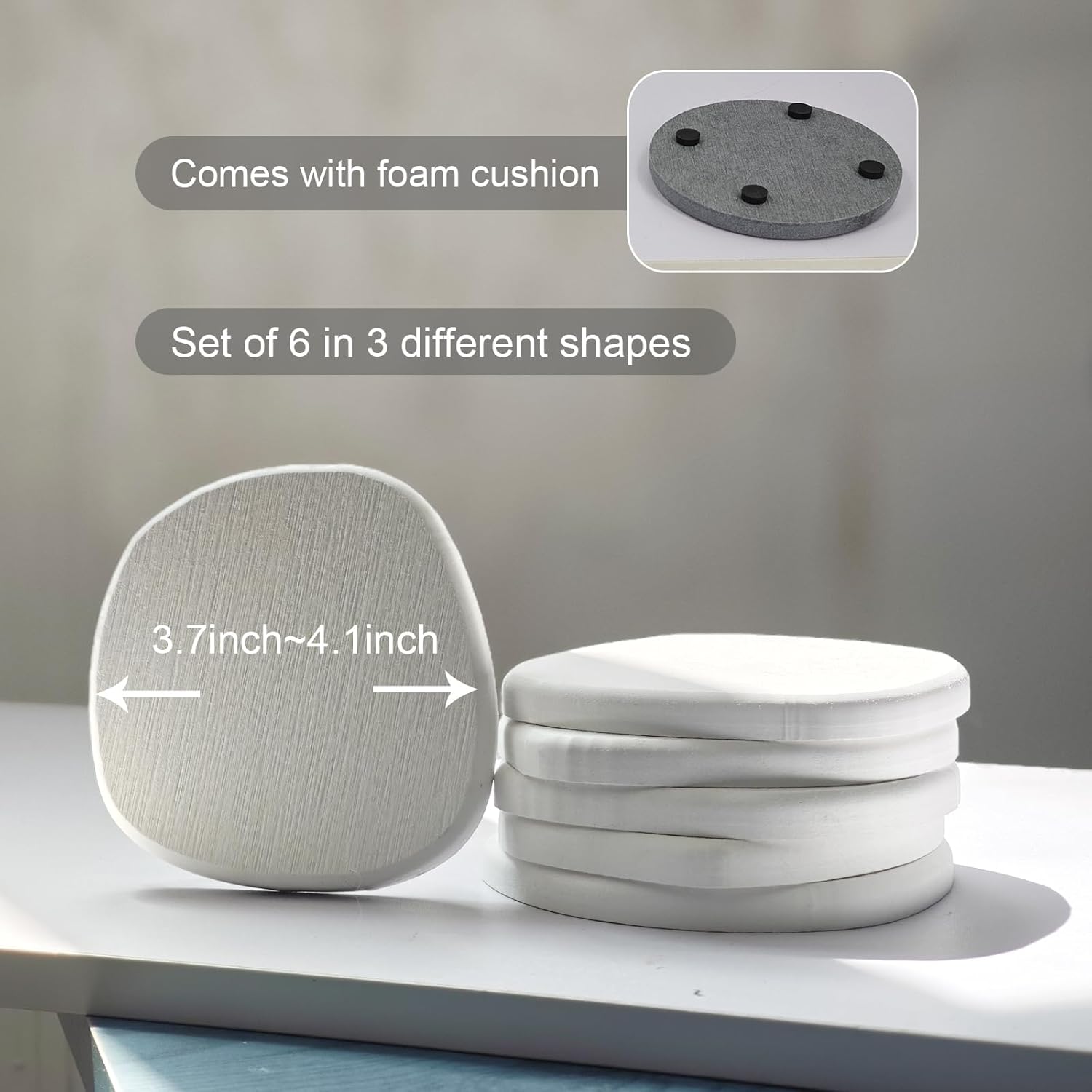 Instant Dry Stone Absorbent Diatomite Coaster Set of 6 for Drinks Wine Coffee, Modern Unique Cup Diatomaceous Earth Coasters for Coffee Table Office Desk, White