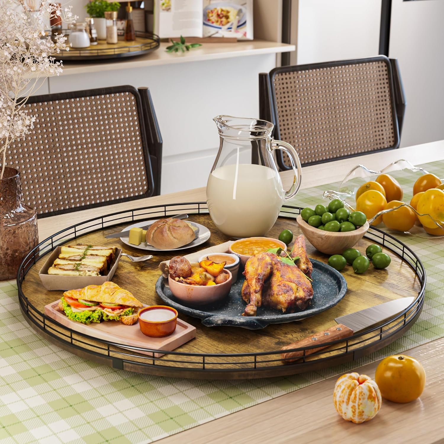 - Wide Application - The lazy susan organizer adopts handmade craftsmanship. Its MDF material is strong and long-lasting, not easy to wear and has no odor. The surface has exquisite texture, creating a unique rustic style