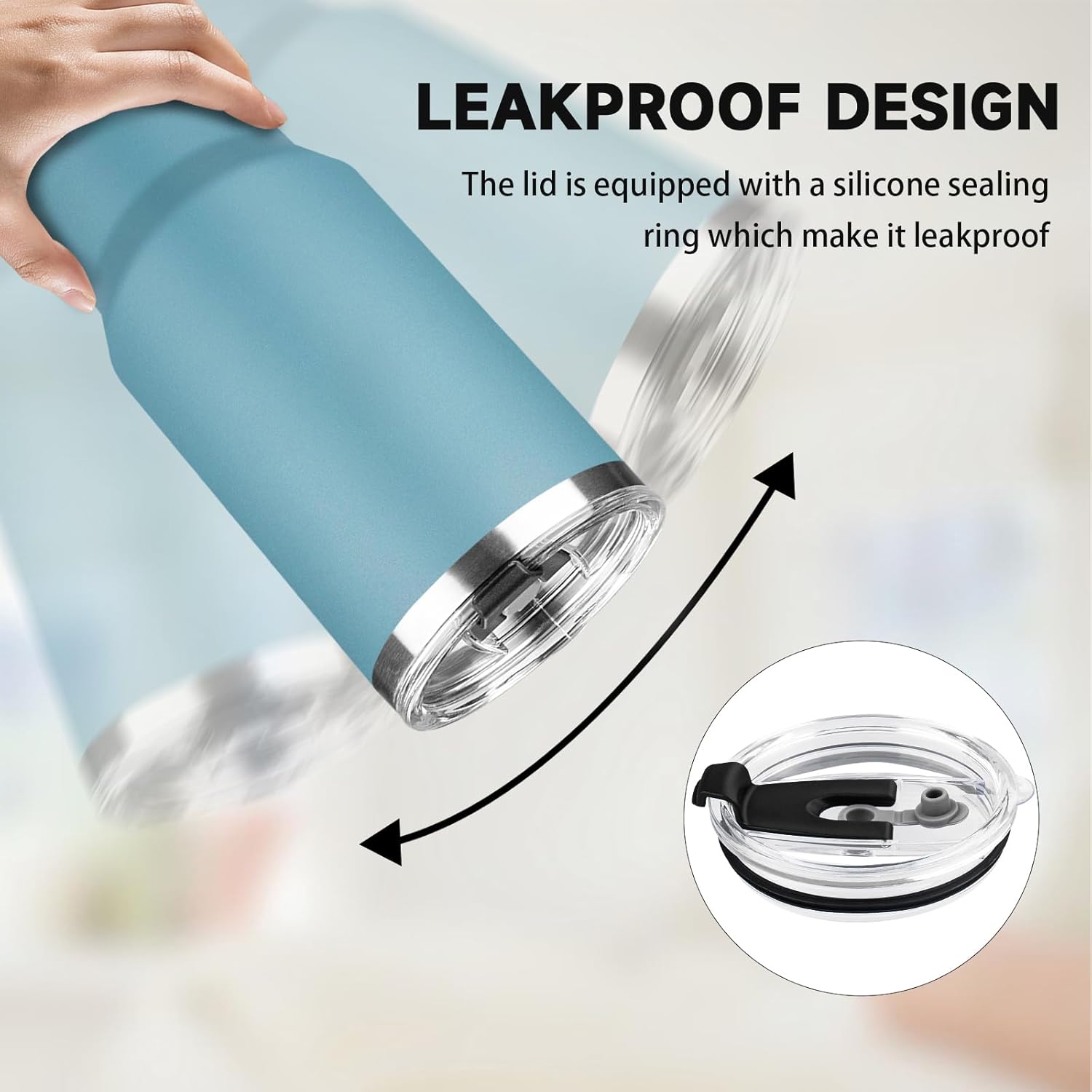 40 oz Tumbler with Lids and Straws, Stainless Steel Insulated Coffee Tumbler, Double Wall Vacuum Insulated Travel Mug Cup, Leakproof Thermal Coffee Cup for Hot and Cold Drinks (azure blue)