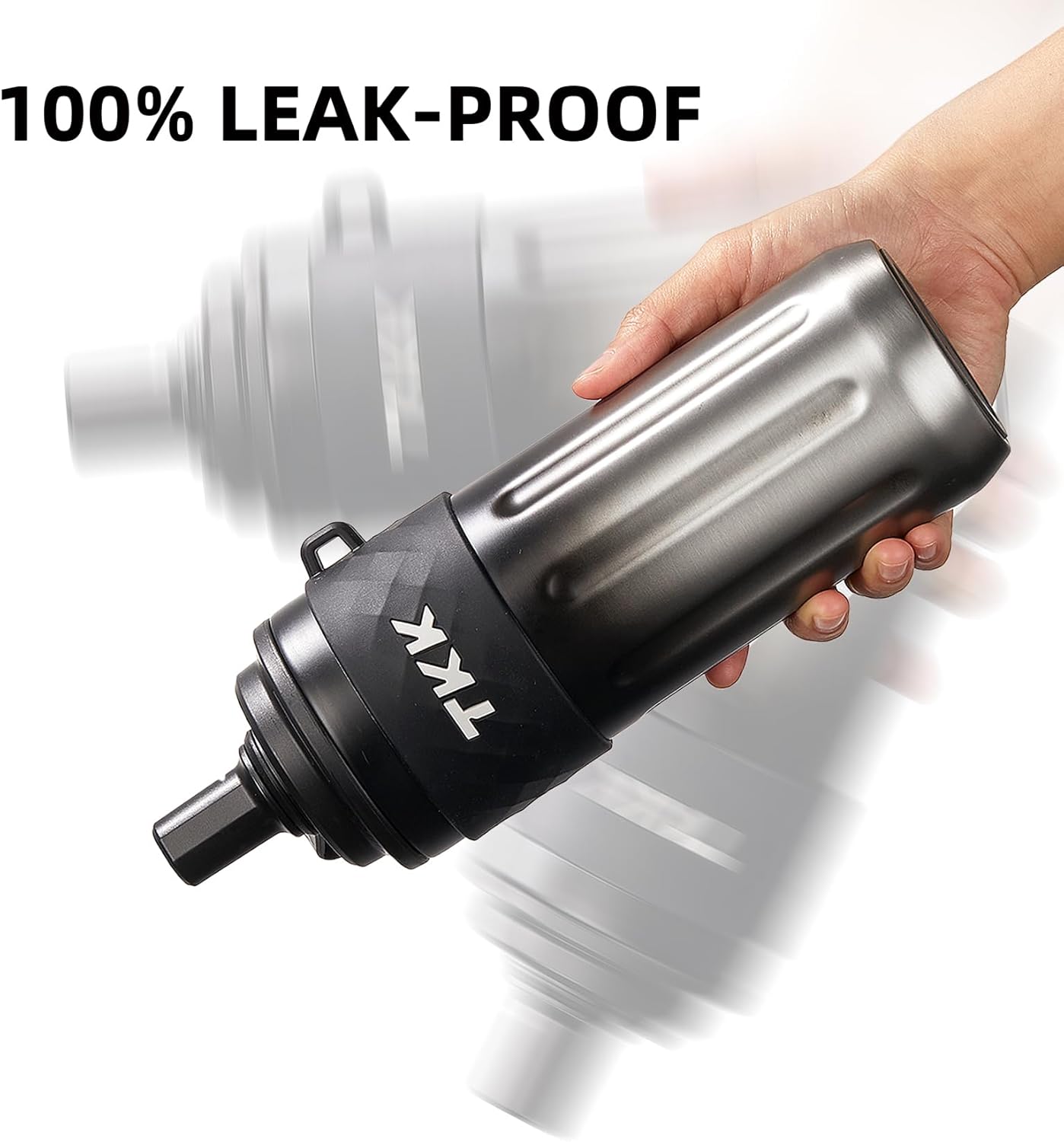 TKK 17 OZ Travel Tumbler Ceramic Lining with Straw Lid, Stainless Steel Vacuum Insulated Double Wall Coffee Tumbler, Leak Proof Iced Water Bottle with Carry Strap for Hot & Cold Drinks, SteelBlack