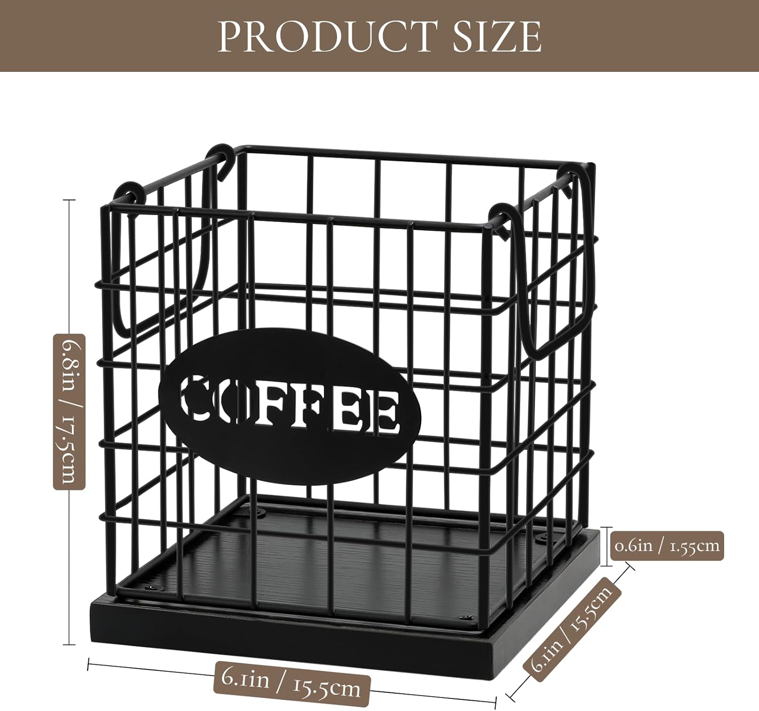 - ATTRACTIVE VINTAGE DECOR: Give your coffee bar a stylish upgrade with our coffee pod holder, crafted with frosted iron wire and rustic black wood panels for a touch of elegance. Ideal for any countertop in the kitchen or office