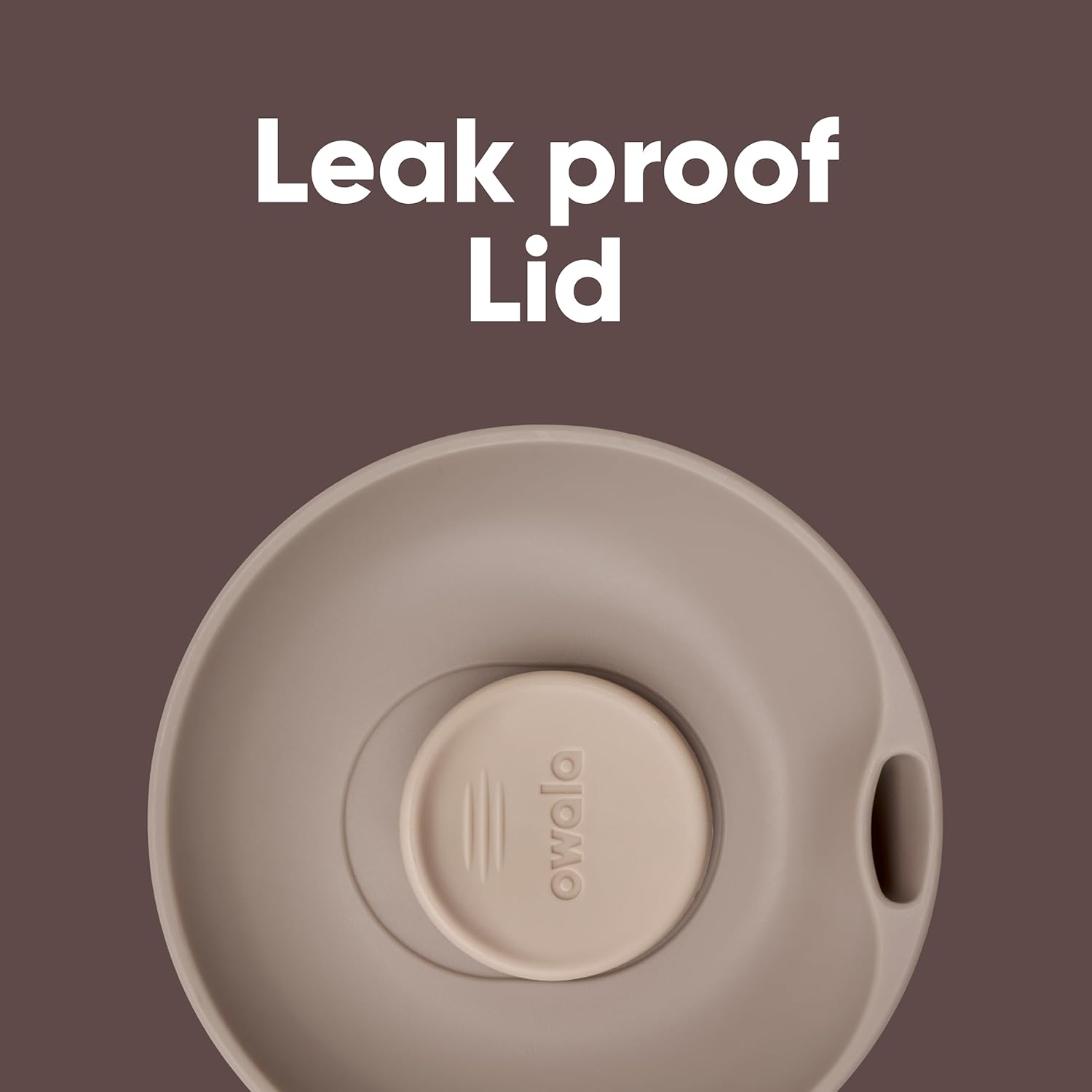 Owala SmoothSip Slider Insulated Stainless Steel Coffee Tumbler, Reusable Iced Coffee Cup, Hot Coffee Travel Mug, BPA Free 20 oz, Tan/White (Vanilla Bean)