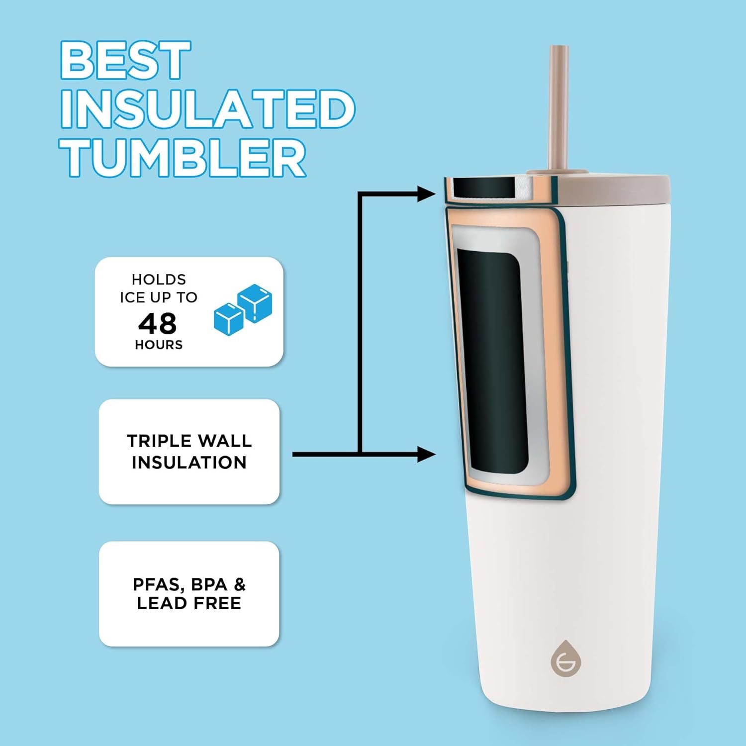 GROSCHE Jasper Insulated Stainless Steel Tumbler With Straw – Travel Cup with Lid, Extreme Insulation & Sleek Design, 23 oz - White