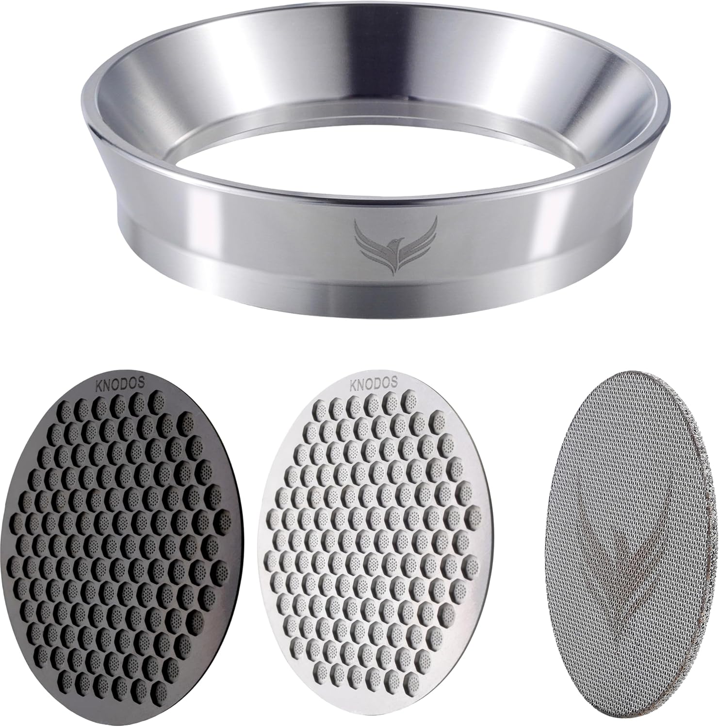 - Complete Dosing Set: Includes a magnetic 58mm espresso dosing funnel and 3pcs puck screens in silver and black, providing a comprehensive solution for precise coffee dosing and filtration.