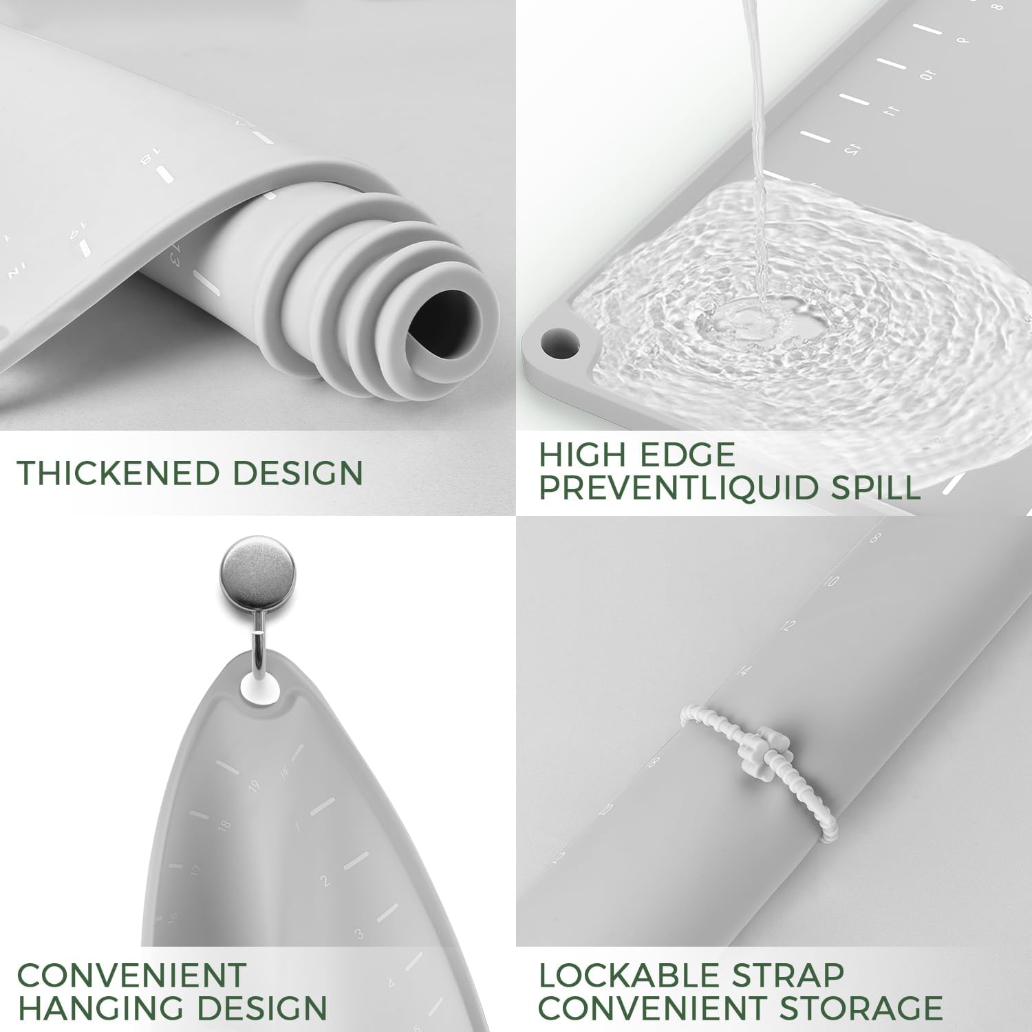 Silicone Baking Mat 32" x 24", Extra Thick Dough Rolling Mat with Measurements and Edge Heightening, Non-stick Food Grade Silicone Pastry Mat for for Pastry, Bread, Cookies, Pizza, Fondant, Pasta
