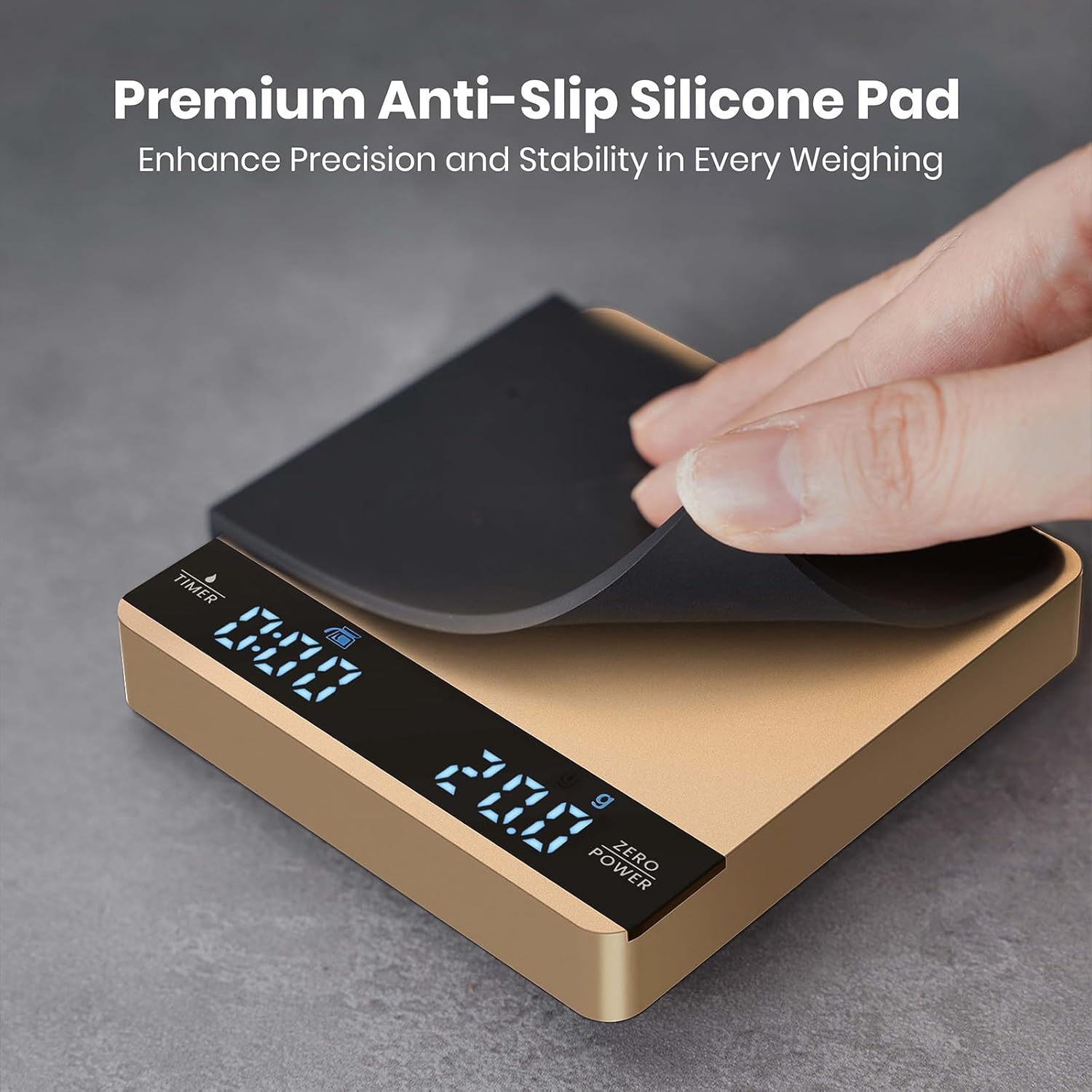 - 【Minimalist Design & Premium Durability】Crafted from high-quality aluminum and heat-resistant silicone, the Maestri House digital coffee scale boasts a sleek, modern design built for durability. The invisible LED display and hidden touch controls enhance its minimalist look, while the surface is waterproof, scratch-resistant, and easy to clean. Designed to be non-slip and heat-insulating, it also features removable silicone pads to protect the scale and provide stability during use