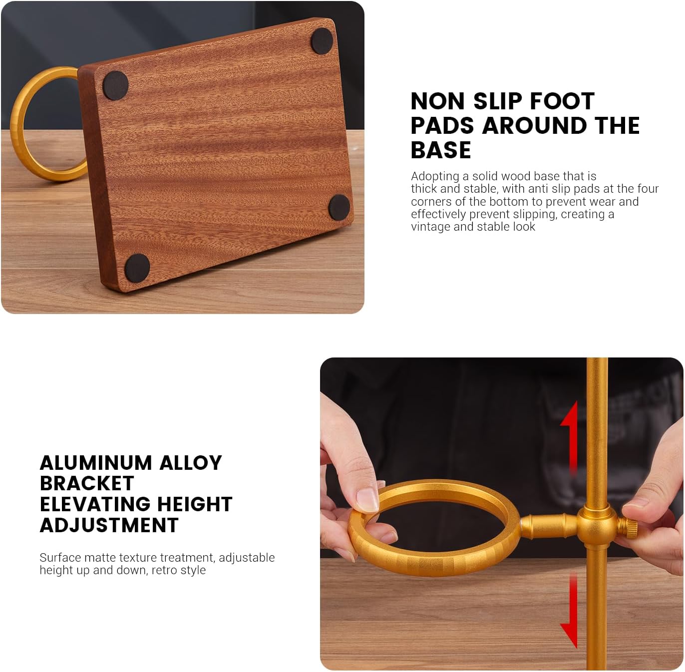 Pour Over Coffee Stand, Height Adjustable Pour over Coffee Maker with Sapele Wooden Base, Paper Filters, Bronze
