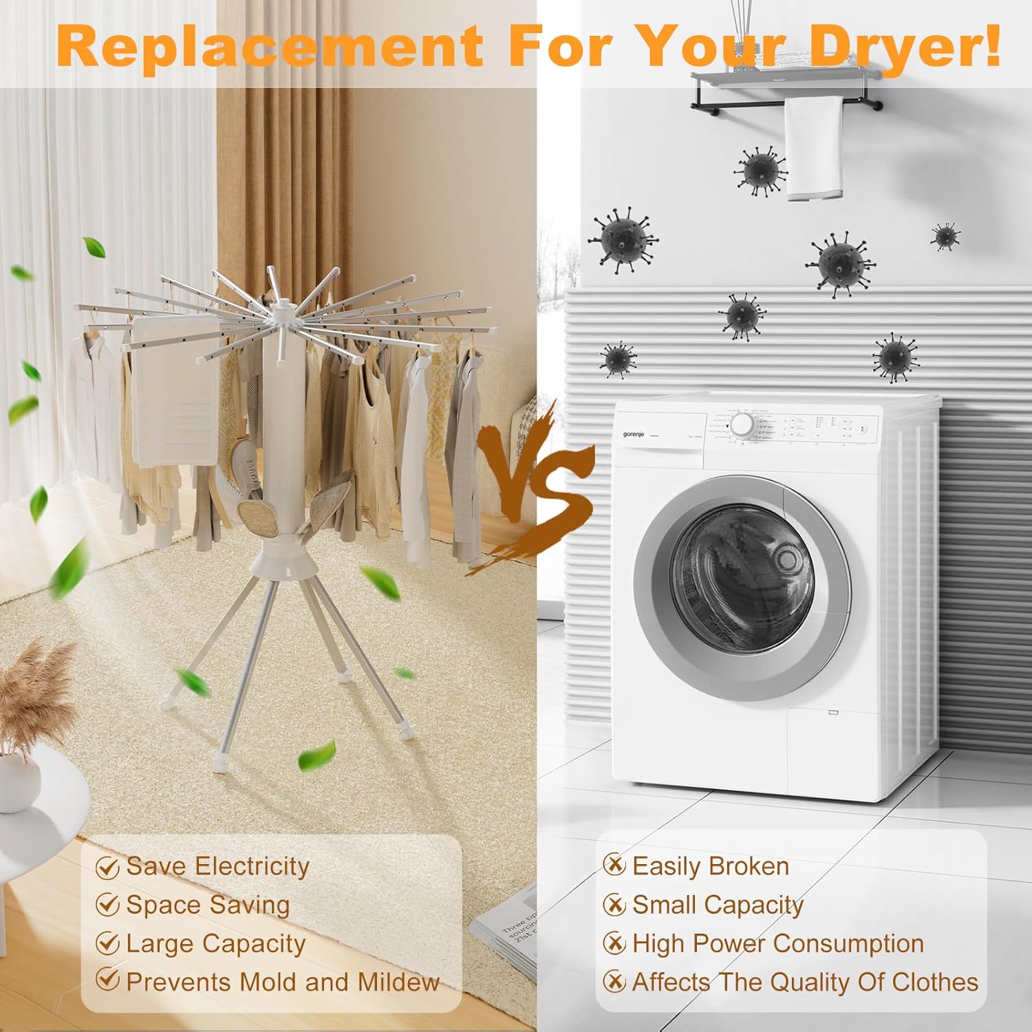 - 【𝐑𝐞𝐩𝐥𝐚𝐜𝐞𝐦𝐞𝐧𝐭 𝐅𝐨𝐫 𝐘𝐨𝐮𝐫 𝐃𝐫𝐲𝐞𝐫!】Never again worry about the hassle of a broken dryer or the lack of one, HOMIER collapsible laundry drying rack offers you the perfect solution. This foldable clothes drying rack is both sturdy and efficient, and allows good air circulation for quick drying. When you're done with it, fold it up so it doesn't take up a huge amount of space, stores very nicely in a corner or closet. And laundry racks are easy to assemble and use, holds a good amount of clothes, and its a good value for the money, making it a perfect replacement to the dryer!