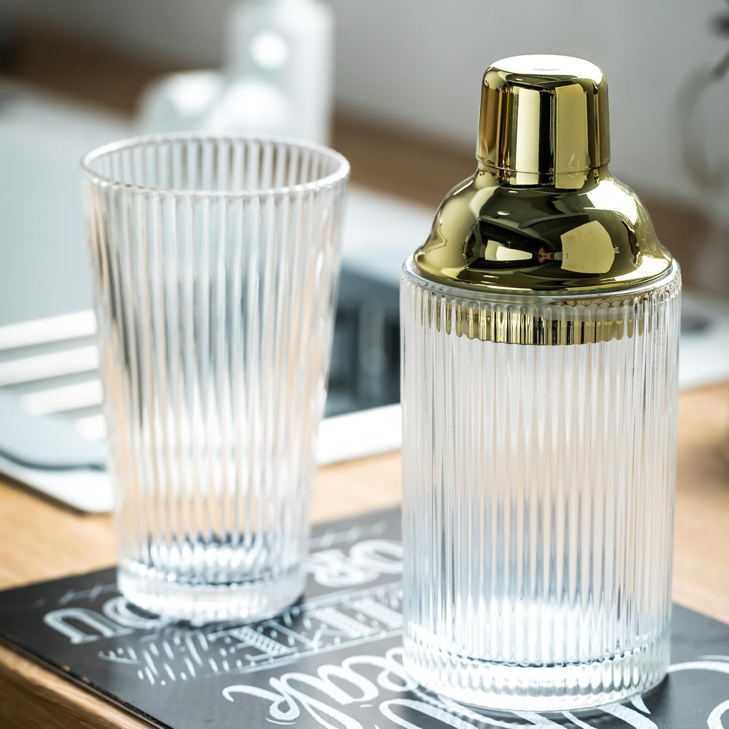 - Premium Quality Material: Crafted from high-quality, lead-free glass, this cocktail shaker set ensures durability and purity in taste. The ribbed design adds a touch of elegance to your barware collection, making it perfect for serving whiskey, cocktails, or any other beverage with style.