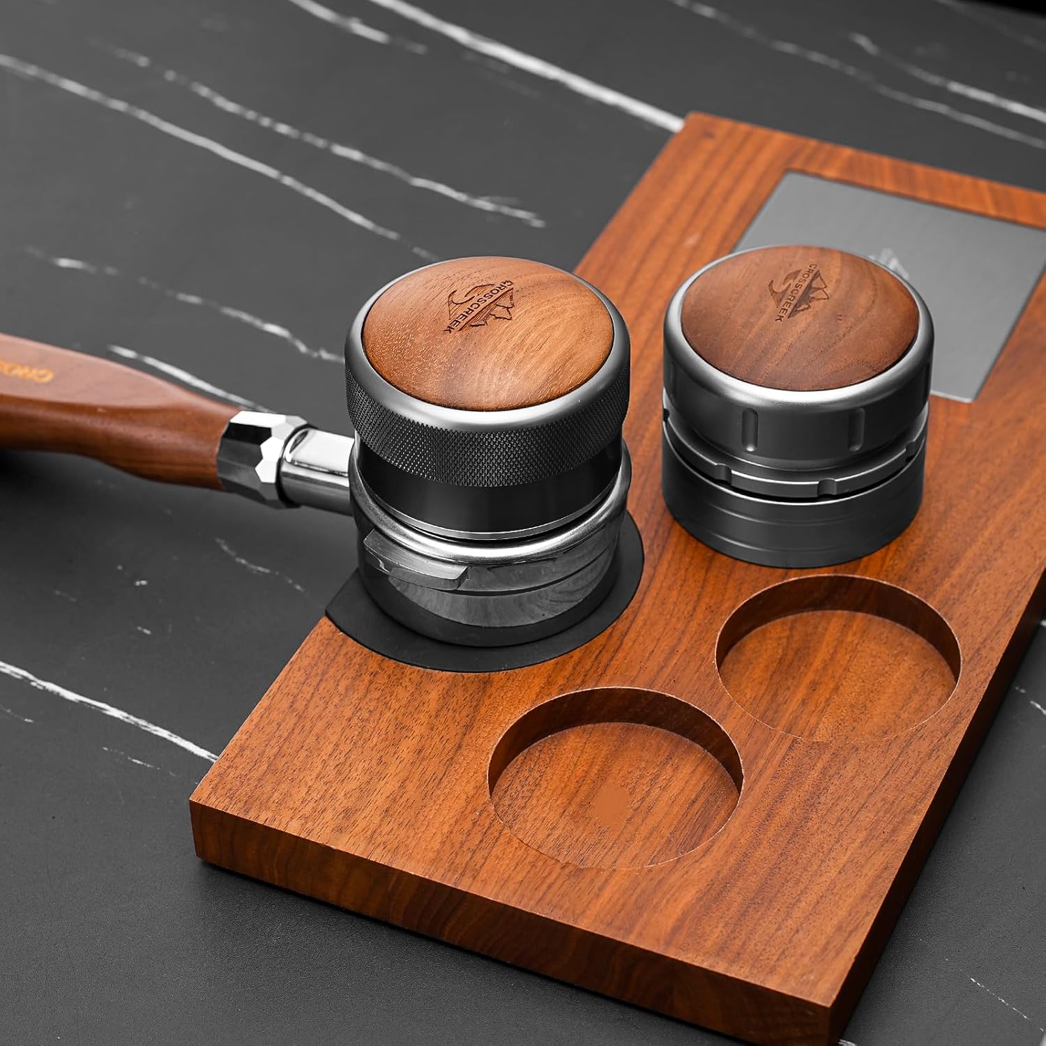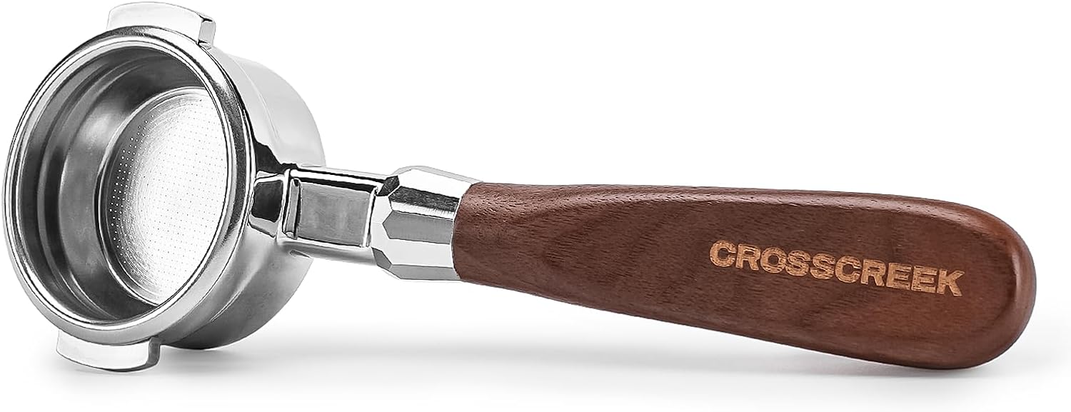 - UNIQUE WALNUT HANDLE. The handle of our bottomless portafilter is carefully crafted to ensure optimal comfort and stability during use. Made of natural walnut, the handle is designed to fit comfortably in your hand, providing a natural grip that minimizes fatigue and strain. The ergonomic design also ensures that the portafilter remains stable during the extracting process, allowing you to maintain precise control and achieve the perfect extraction every time