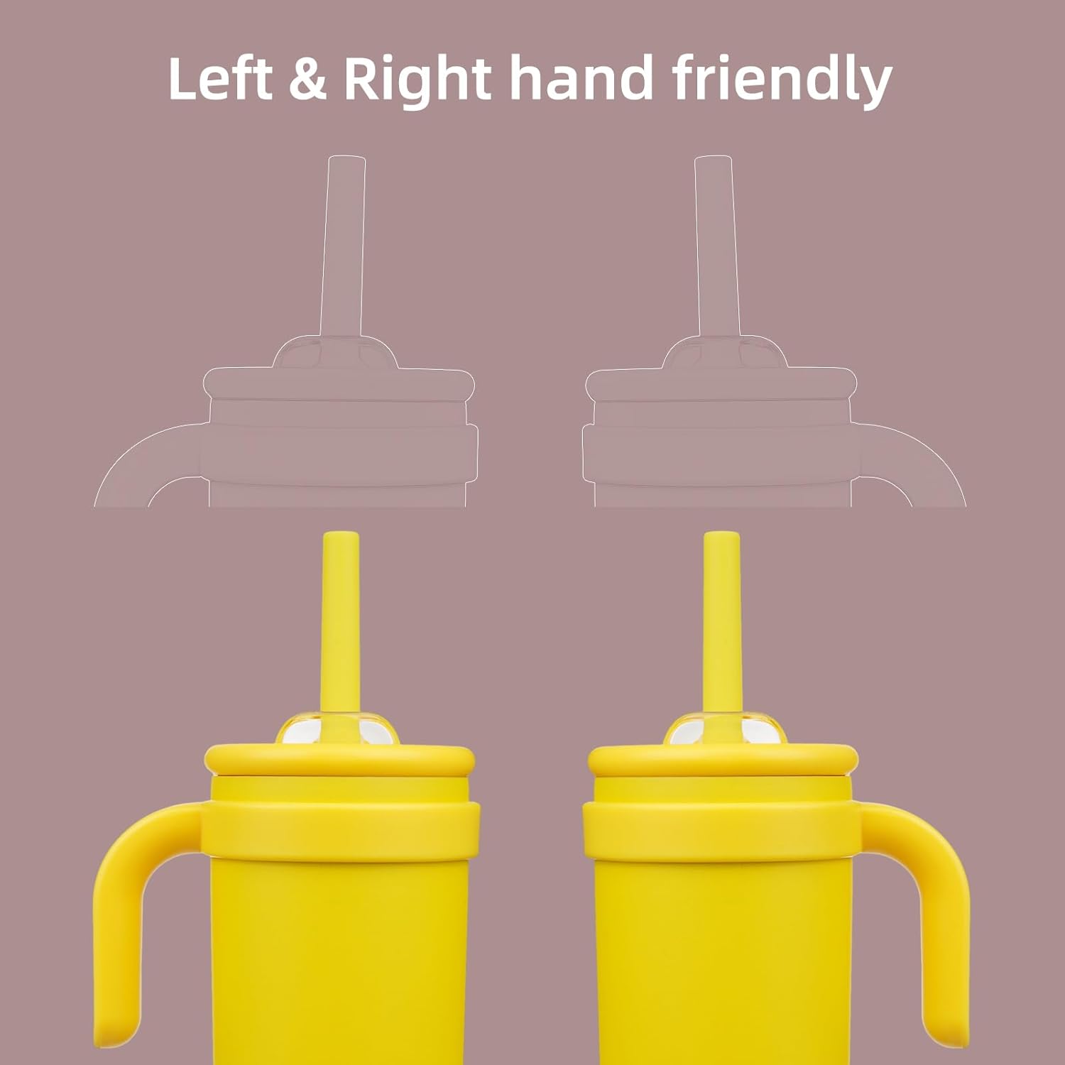 18 oz Tumbler with Side Handle, Insulated Water Bottle with Straw and 2 in 1 Lid, Stainless Steel Cup Travel Coffee Mug for Sports Office Gym,Yellow